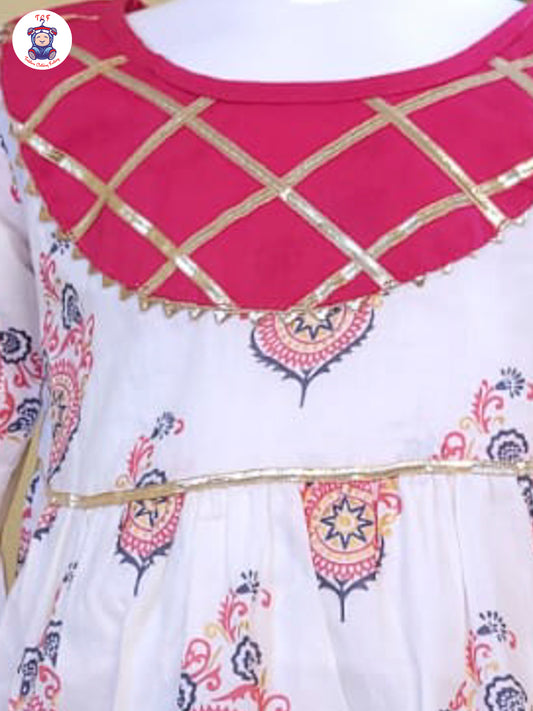 Ruby & White - Printed A-Line Kurti Set