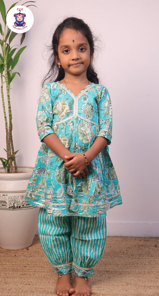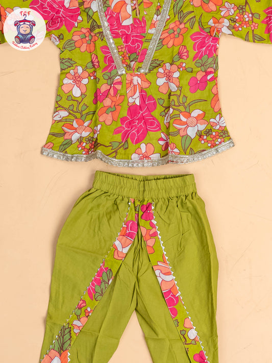 Light Green - Girls Floral printed Dhoti Salwar