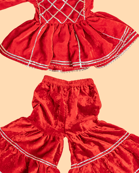 Maroon - Girls Velvet Readymade Salwar
