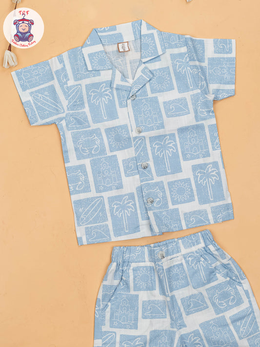 Sky Blue - Boys Readymade Cotton Shirts & Shorts