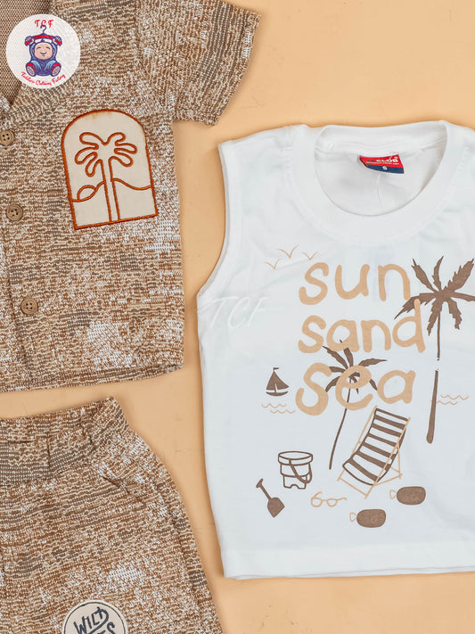 Brown & White - Boys Readymade Cotton Shirts & Shorts