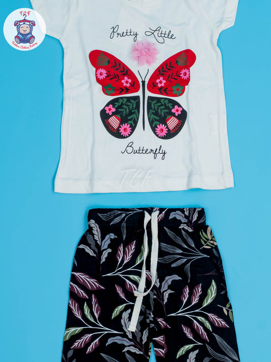 White & Black - Girls Floral Night Wear