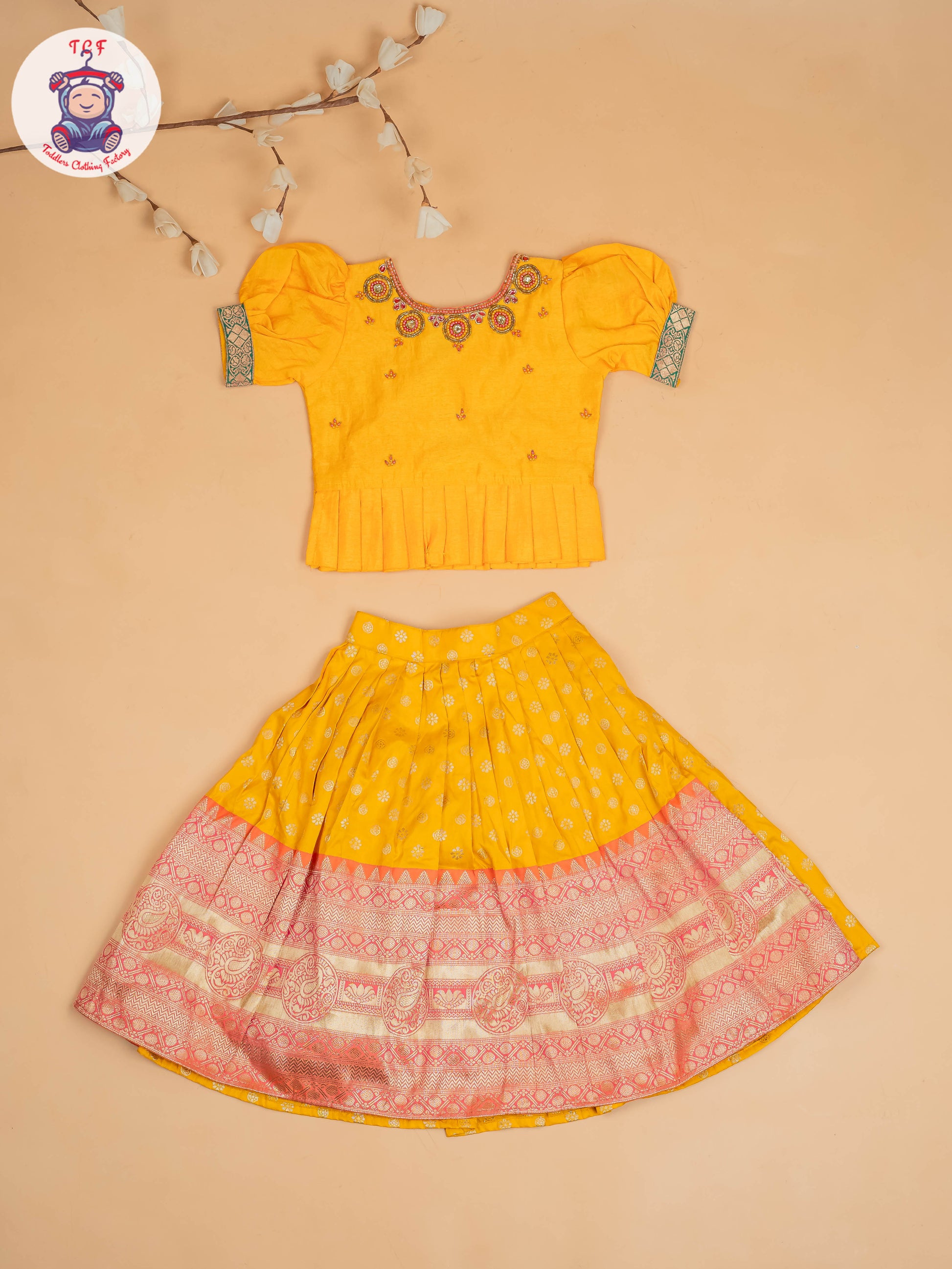 A Lehenga Choli for girls is a traditional yet stylish outfit that adds elegance to any festive or special occasion. The set comes with a beautifully designed flared lehenga (skirt), a matching or contrast choli (blouse), and a dupatta to complete the ethnic look.
