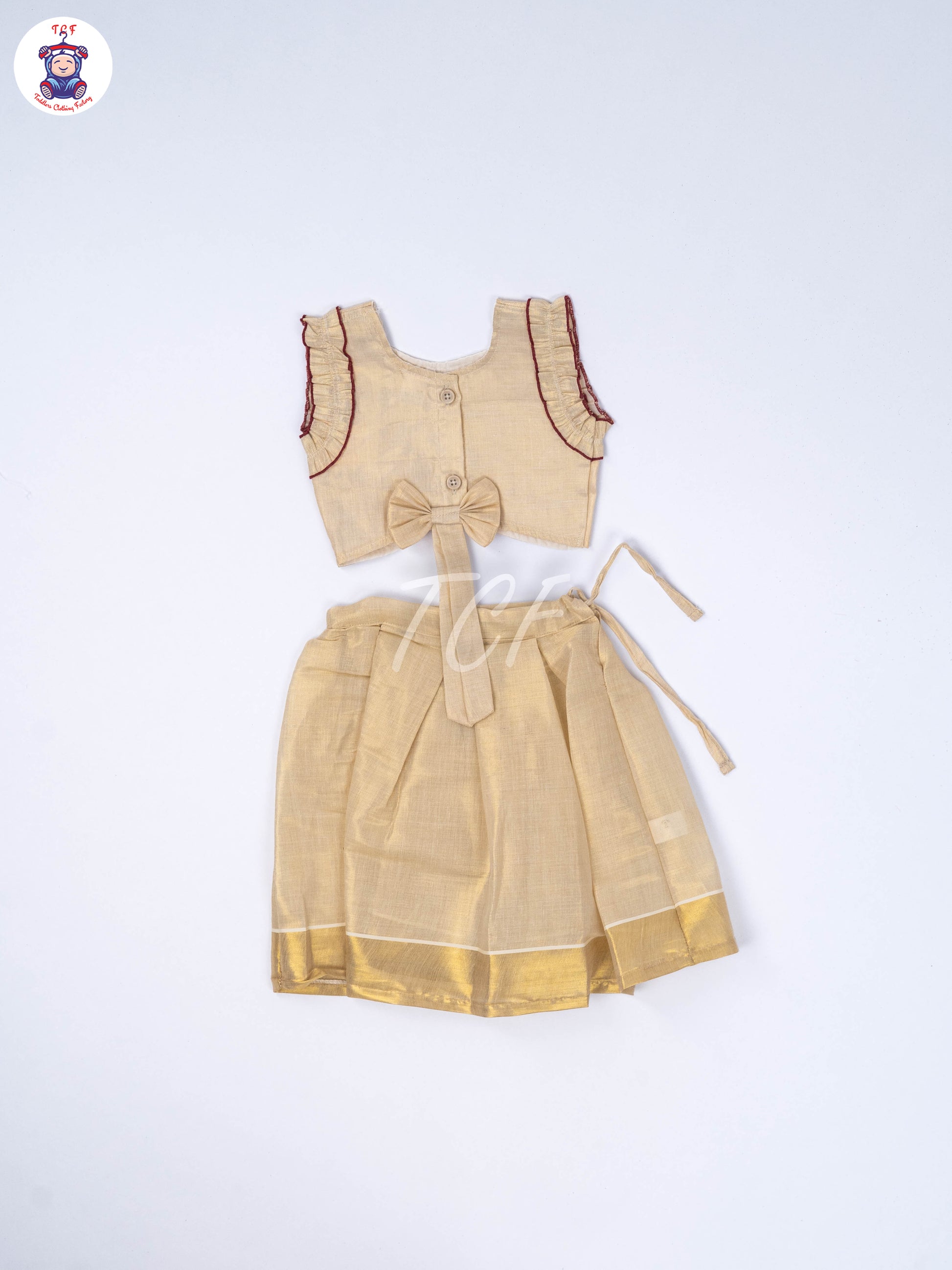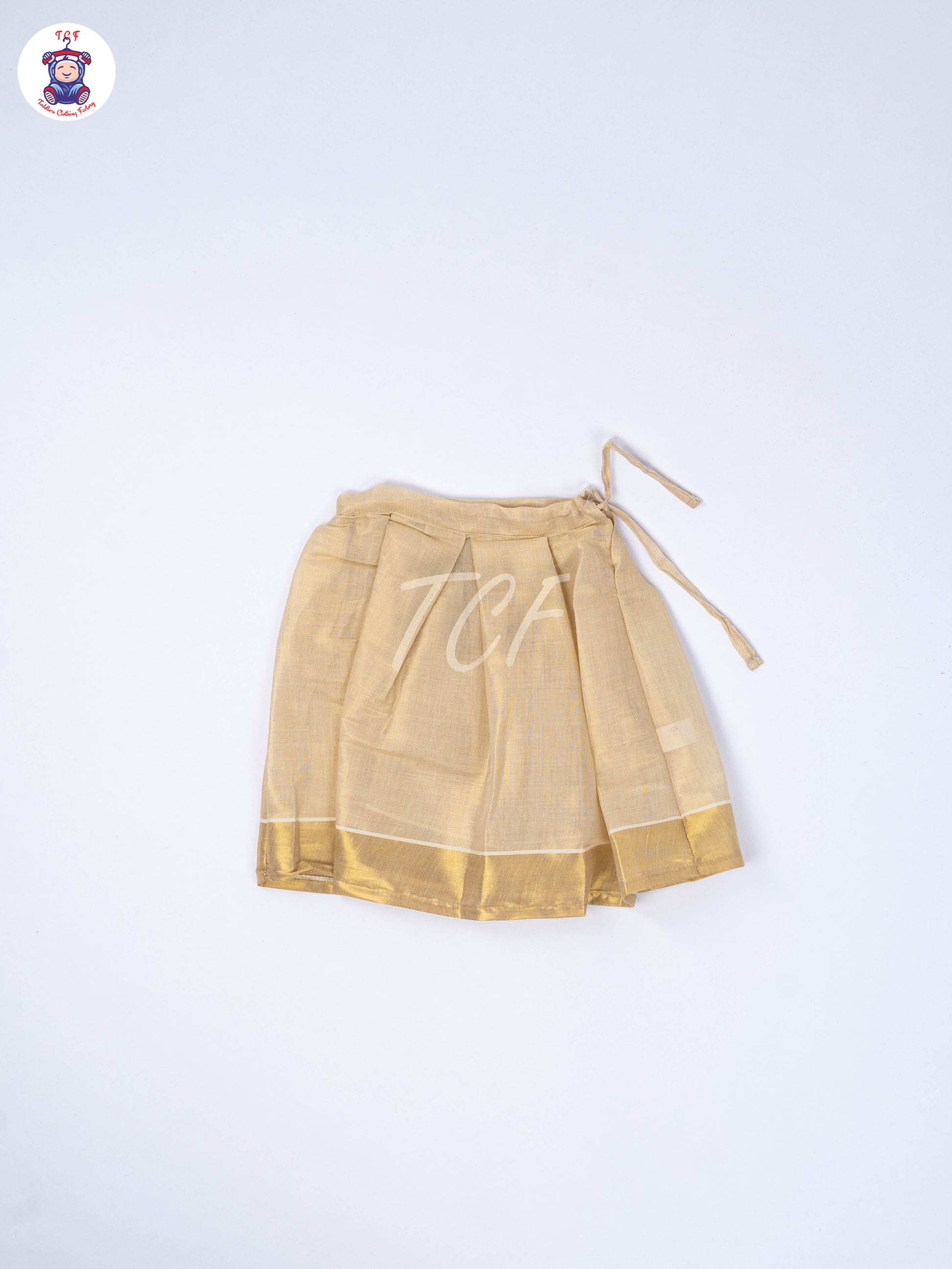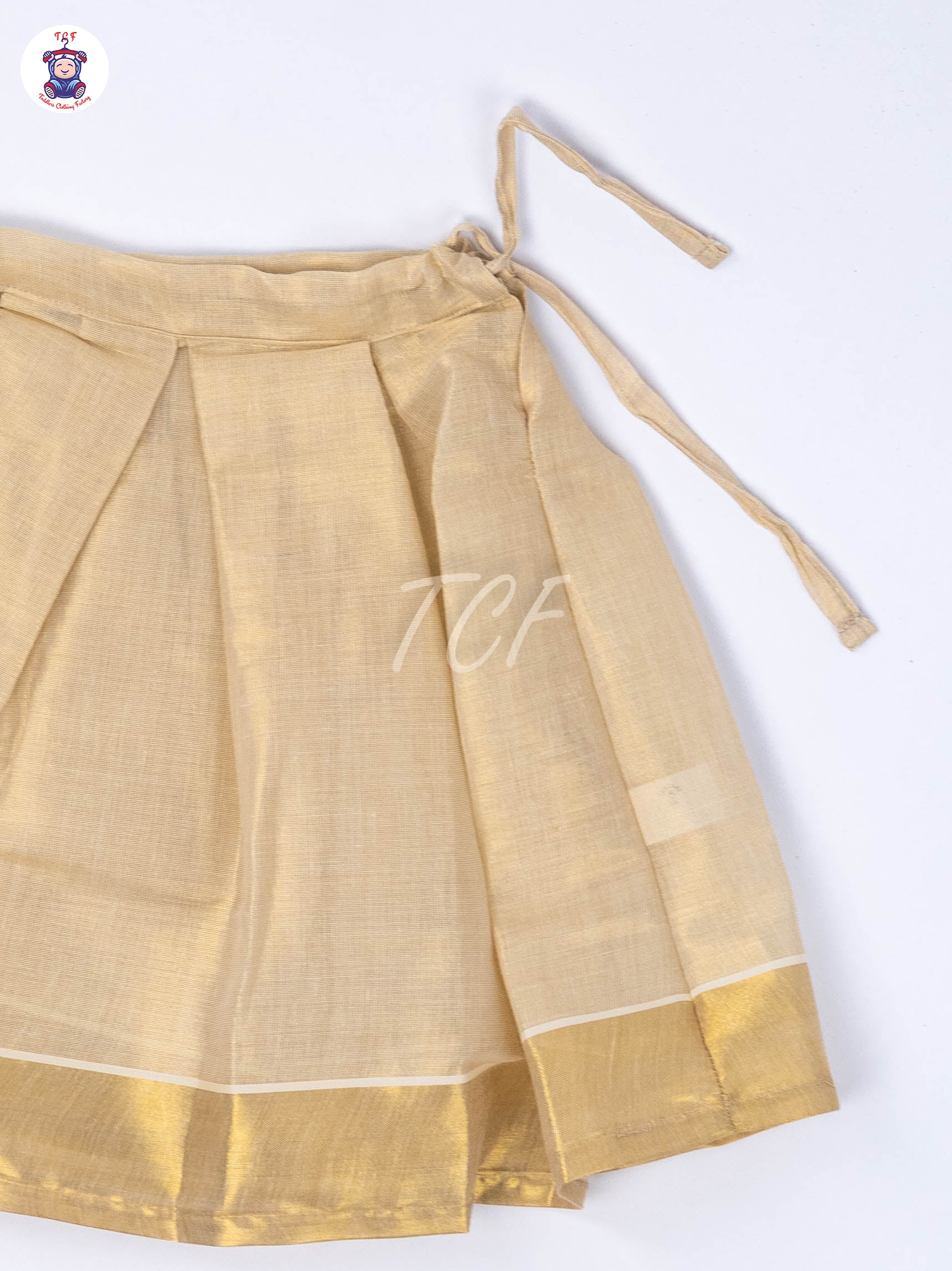 Kerala Cotton Pavadai Sattai is a traditional South Indian attire for young girls, beautifully crafted from soft and breathable Kerala cotton. Designed with classic white or off-white fabric and highlighted with golden zari borders, it reflects the elegance of Kerala’s cultural heritage.