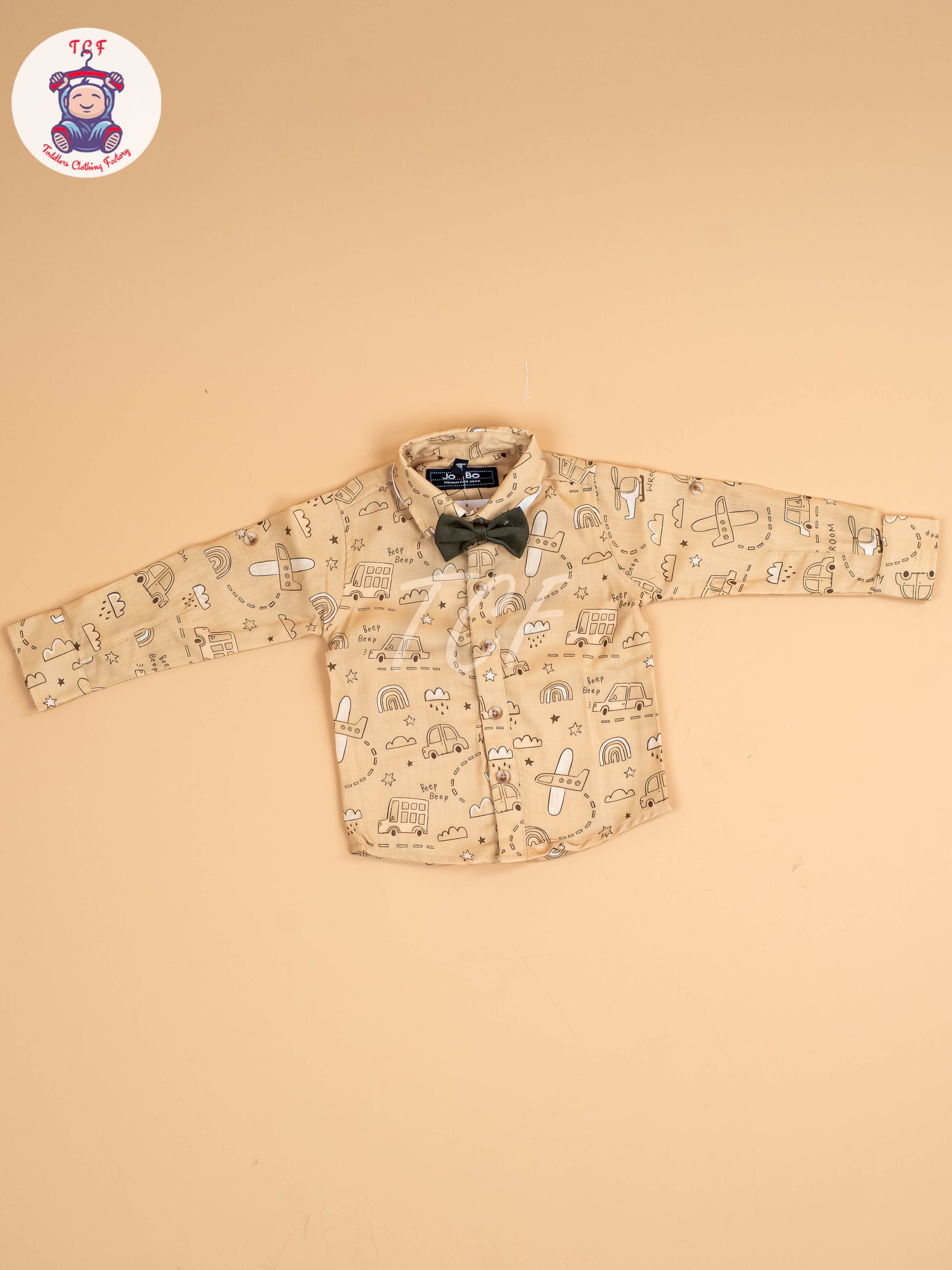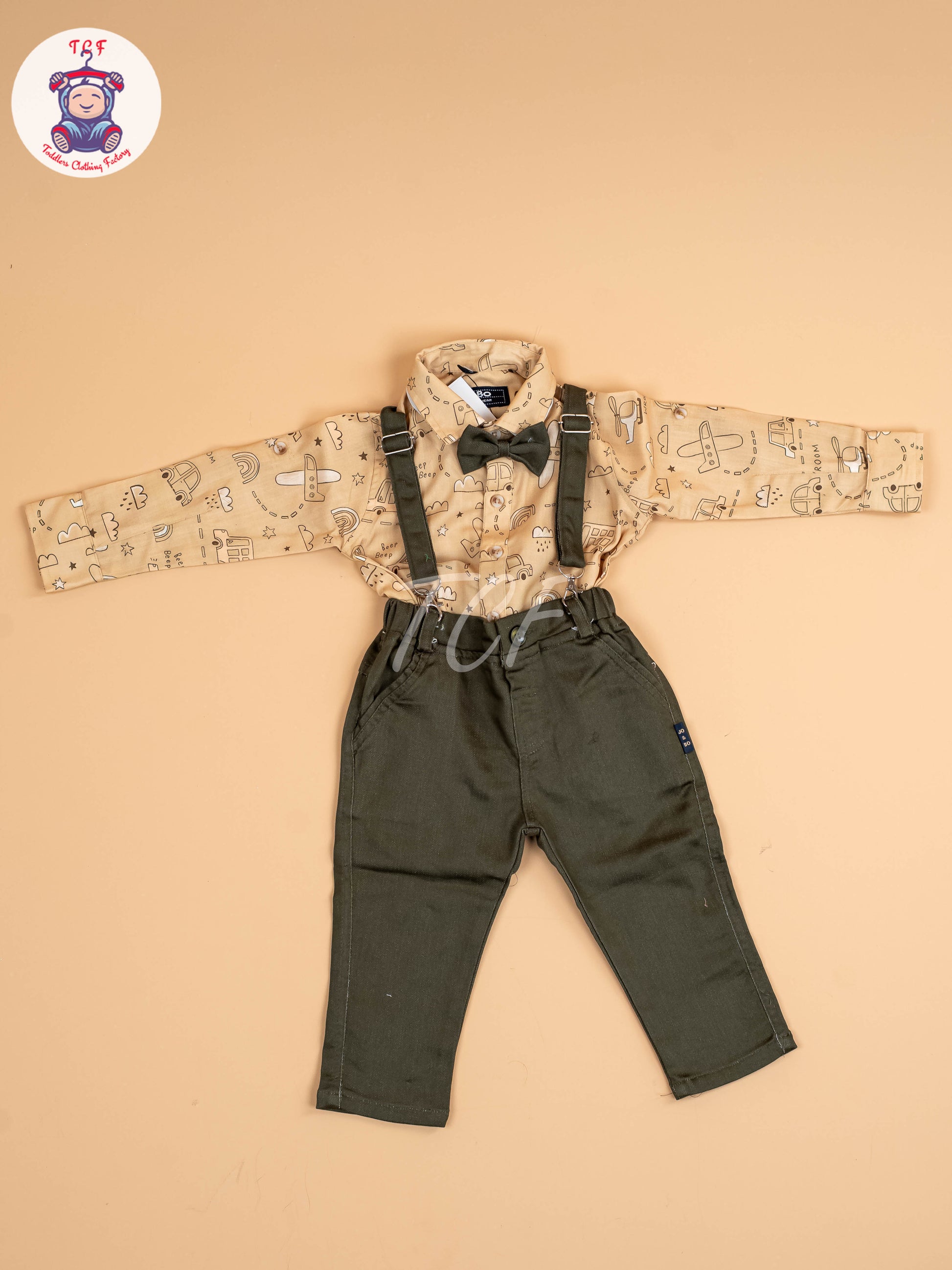 Beige & Brown - Full Sleeves Shirts & Pants Set With Suspender & Bow