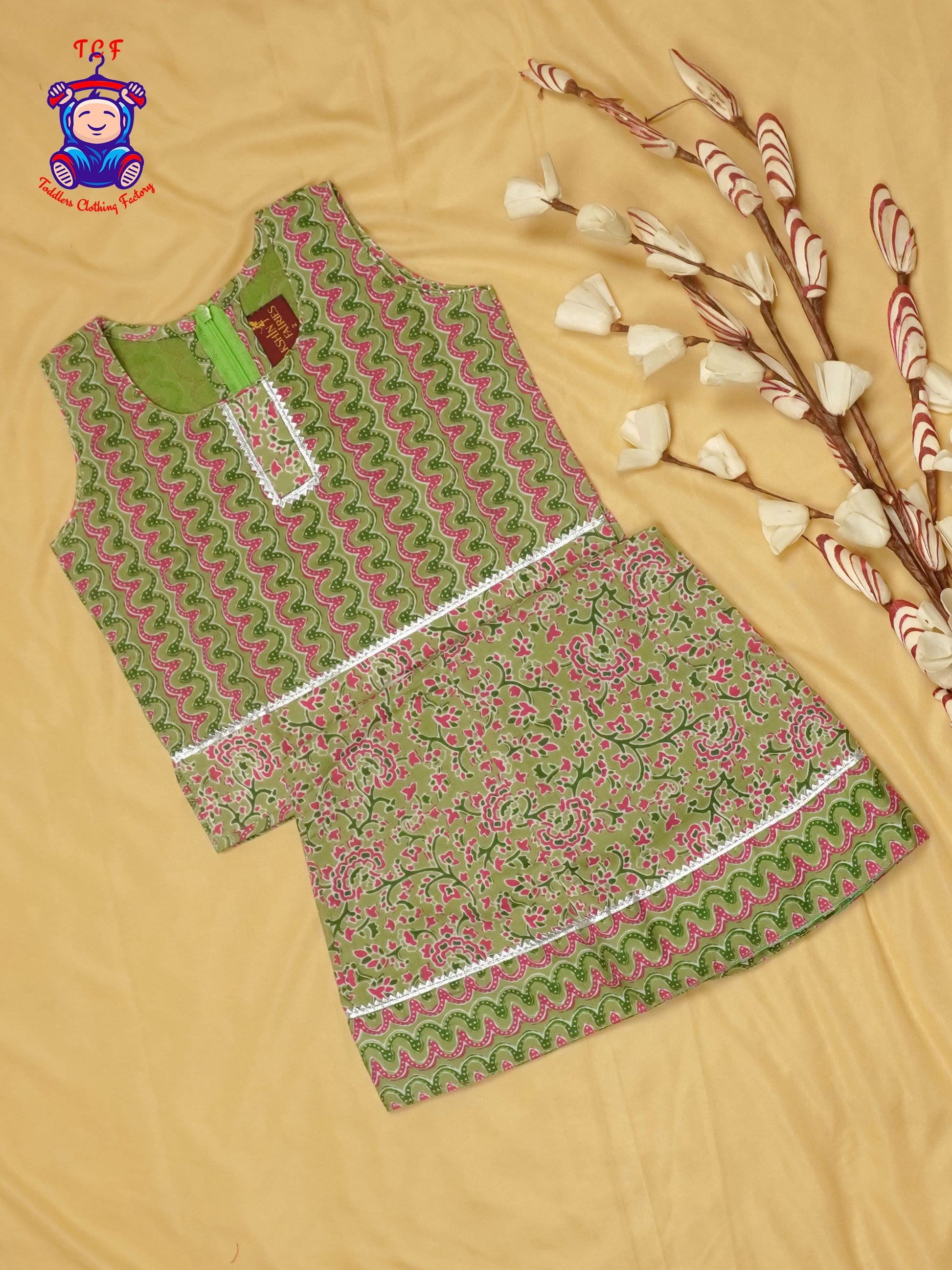 Pretty Green printed Readymade pavadai Made of premium quality fabric, it provides utmost comfort and lets your munchkin be in the best of their looks always!