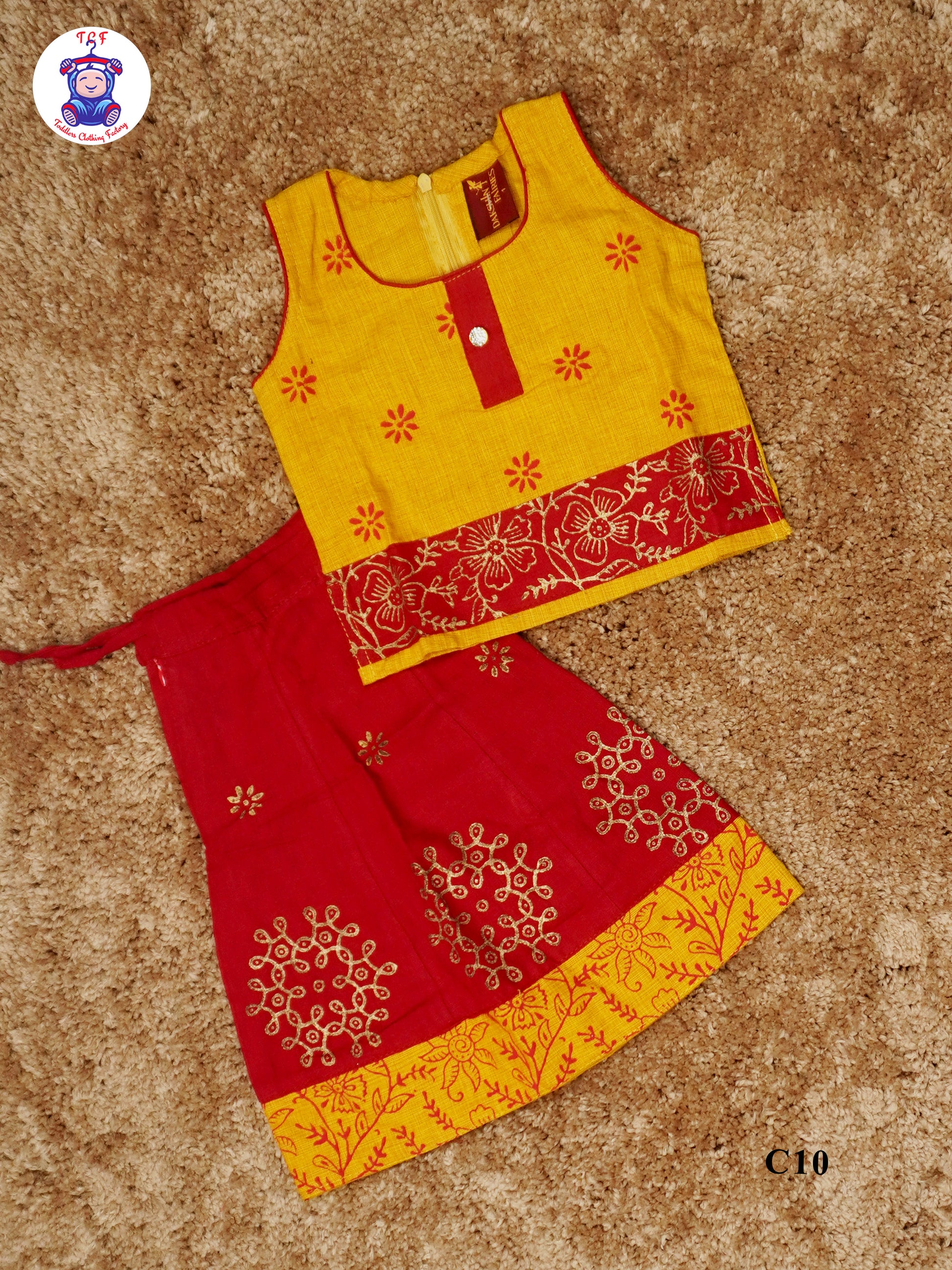 Mustard & Red - Cotton Pavadai Sattai