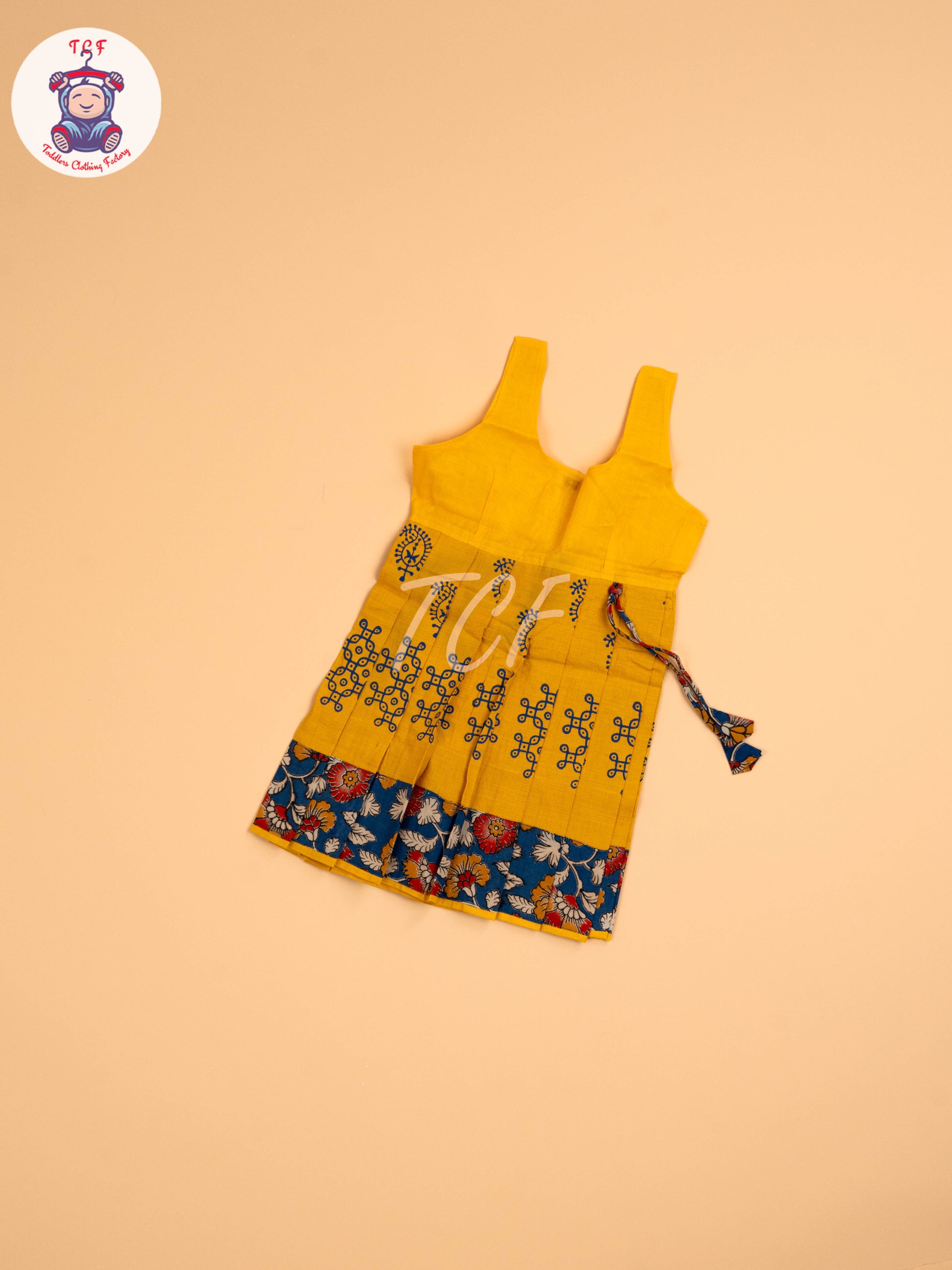 Bring timeless elegance to your little one’s wardrobe with our Kalamkari Pavadai Sattai. Beautifully crafted from soft cotton fabric, this traditional outfit features intricate Kalamkari prints that showcase rich Indian artistryLightweight and breathable, this outfit is ideal for festivals, family functions, and cultural celebrations, keeping your girl stylish and comfortable all day long.