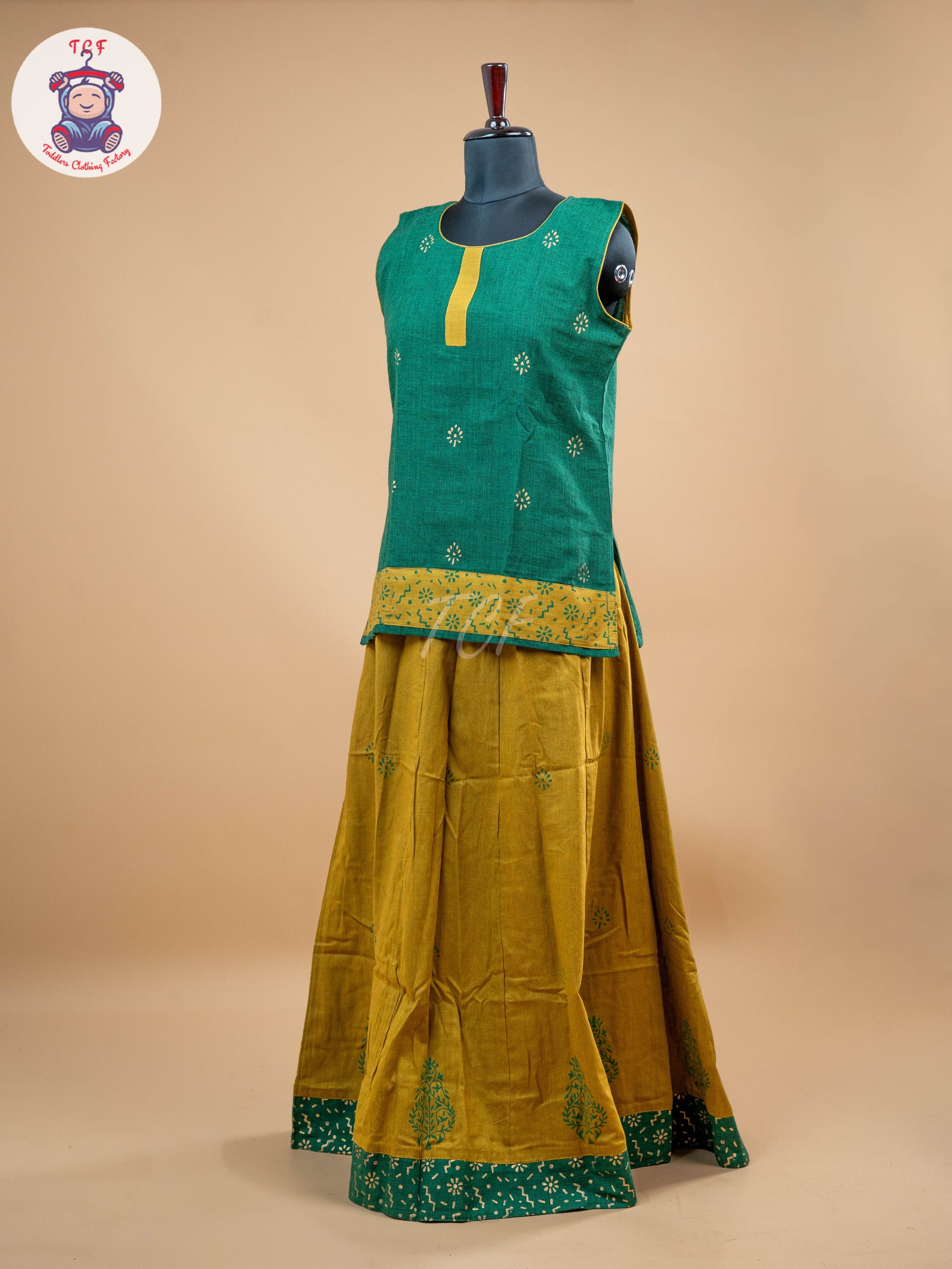 Green & Mustard - Adult Readymade Pavadai Sattai