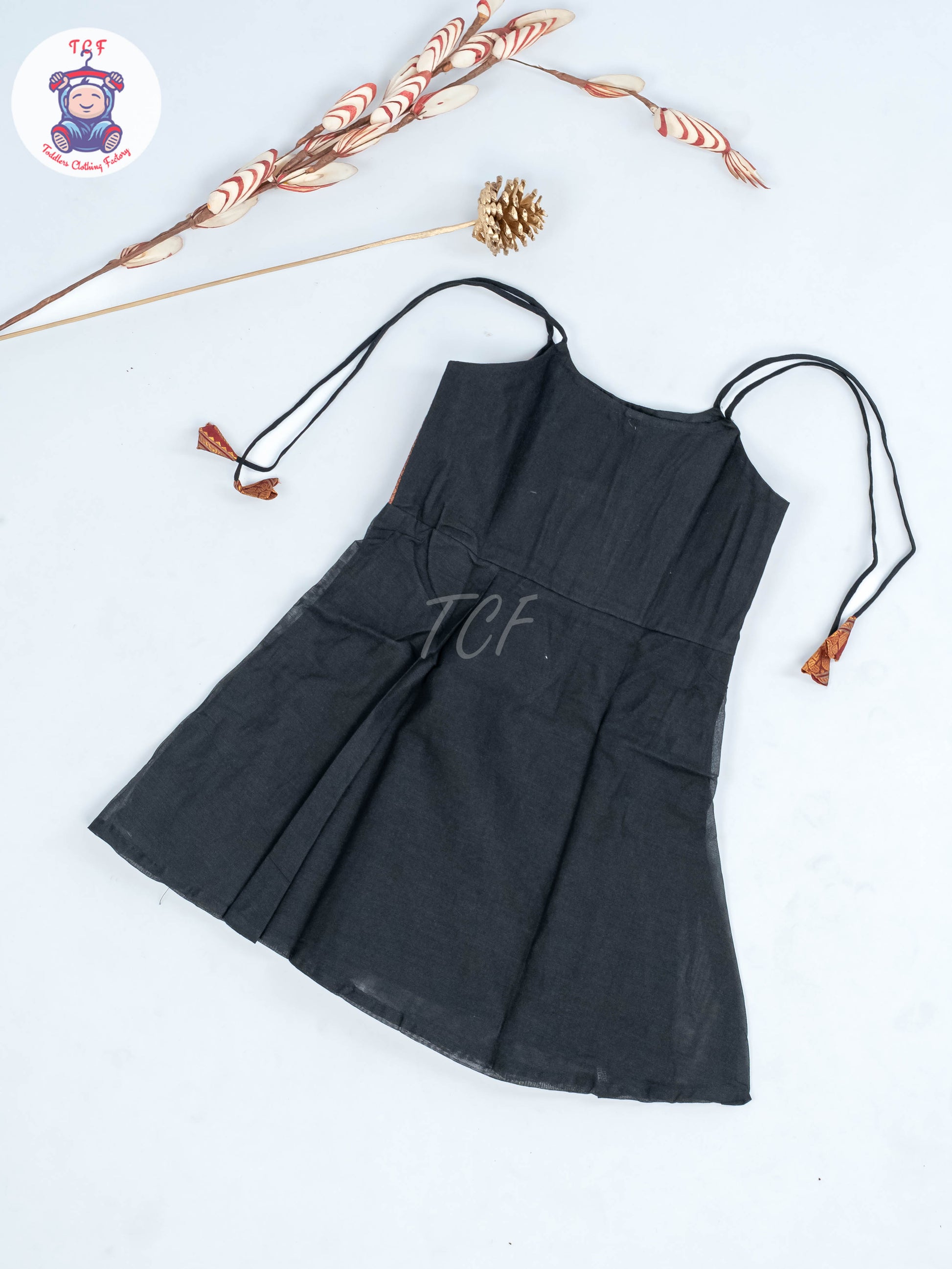 Black & Red - Girls Chettinad Cotton Knot Frock