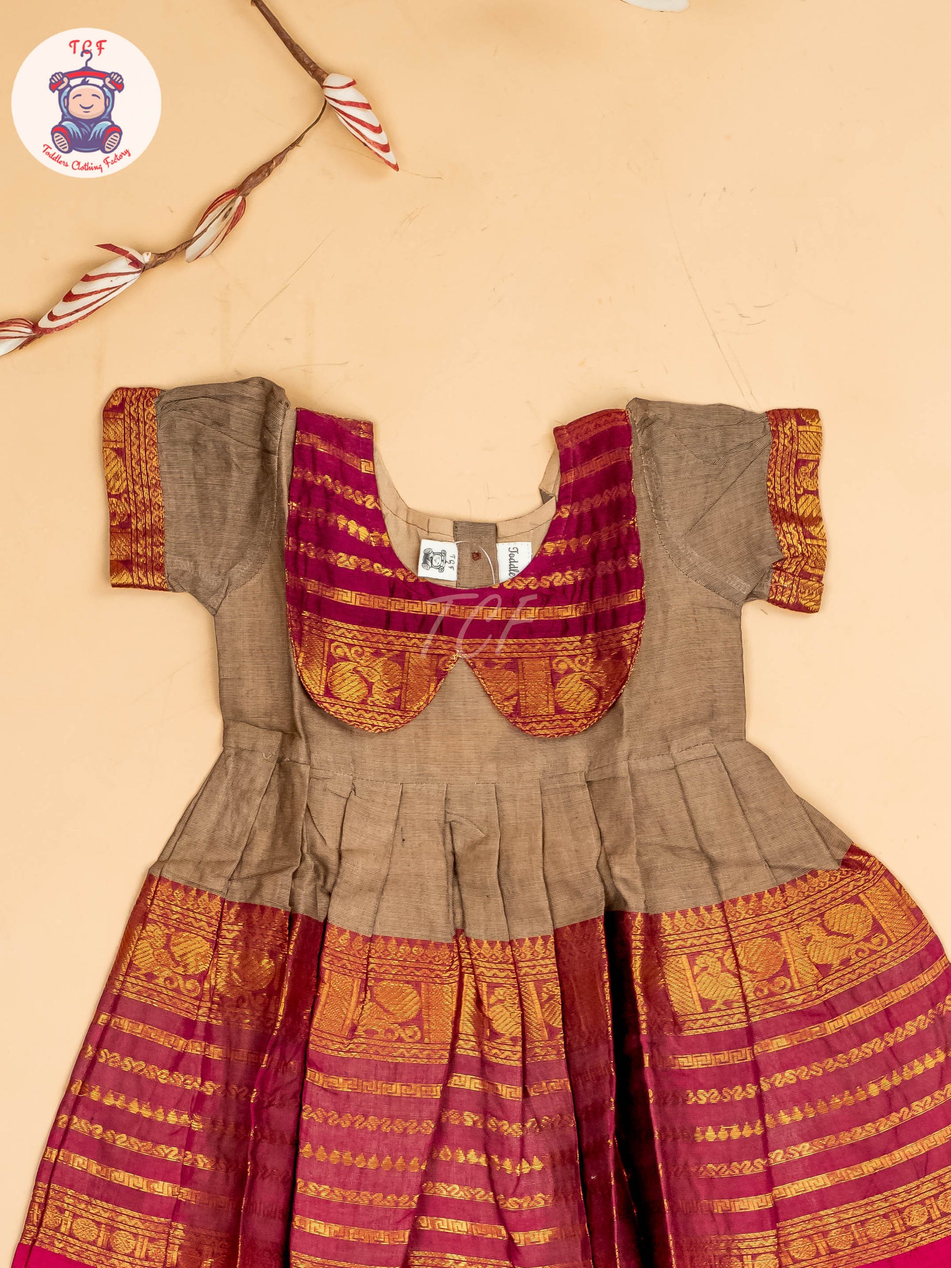 Brown & Maroon - Girls Chettinad Cotton Pan Collor Frock
