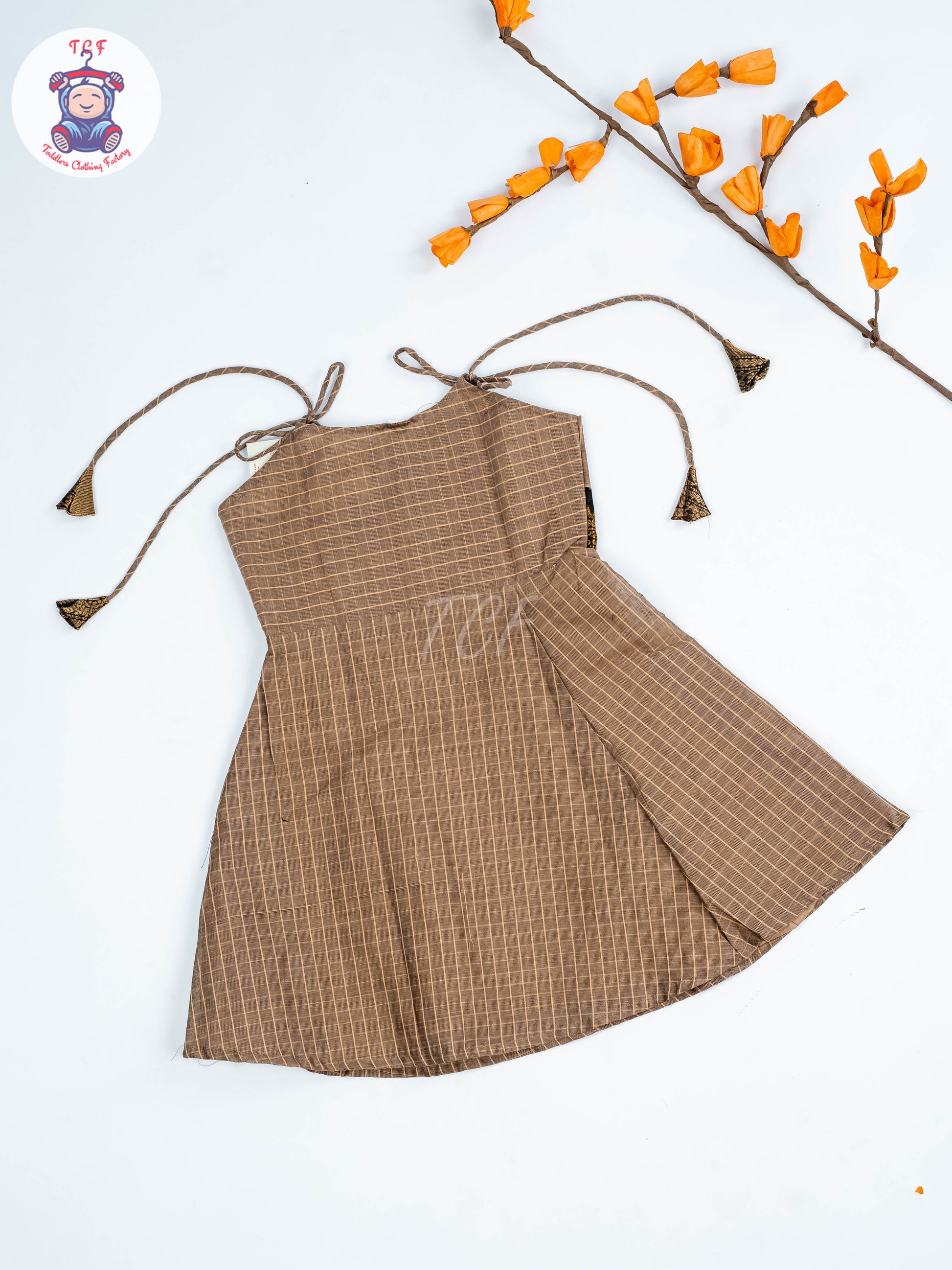 Lite Brown & Maroon - Girls Chettinad Cotton Knot Frock
