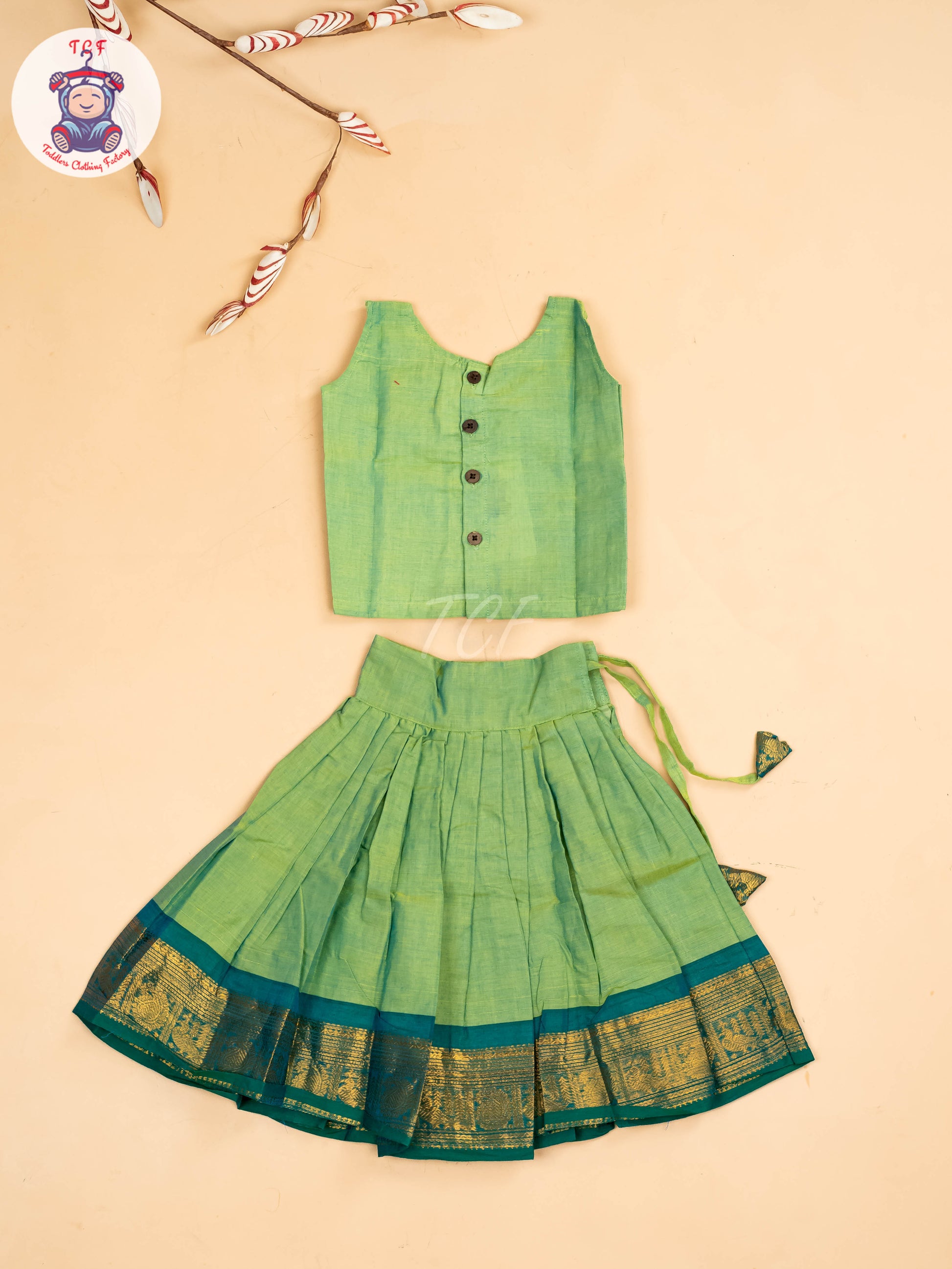 Green & Sky Blue - Chettinad Cotton Pavadai Sattai