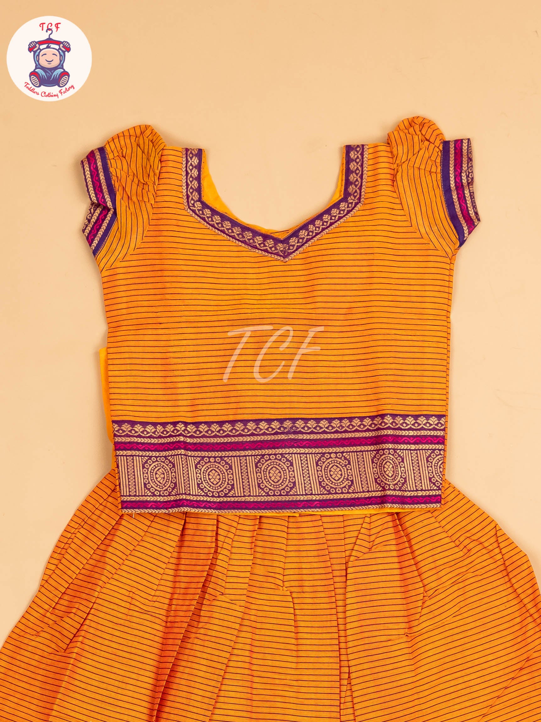 Adorn your little girl in traditional elegance with our Chettinad Cotton Pavadai Sattai, beautifully crafted from authentic Chettinad handloom cotton. This outfit features a vibrant pavadai (skirt) paired with a matching sattai (blouse) showcasing classic South Indian patterns and rich colors.