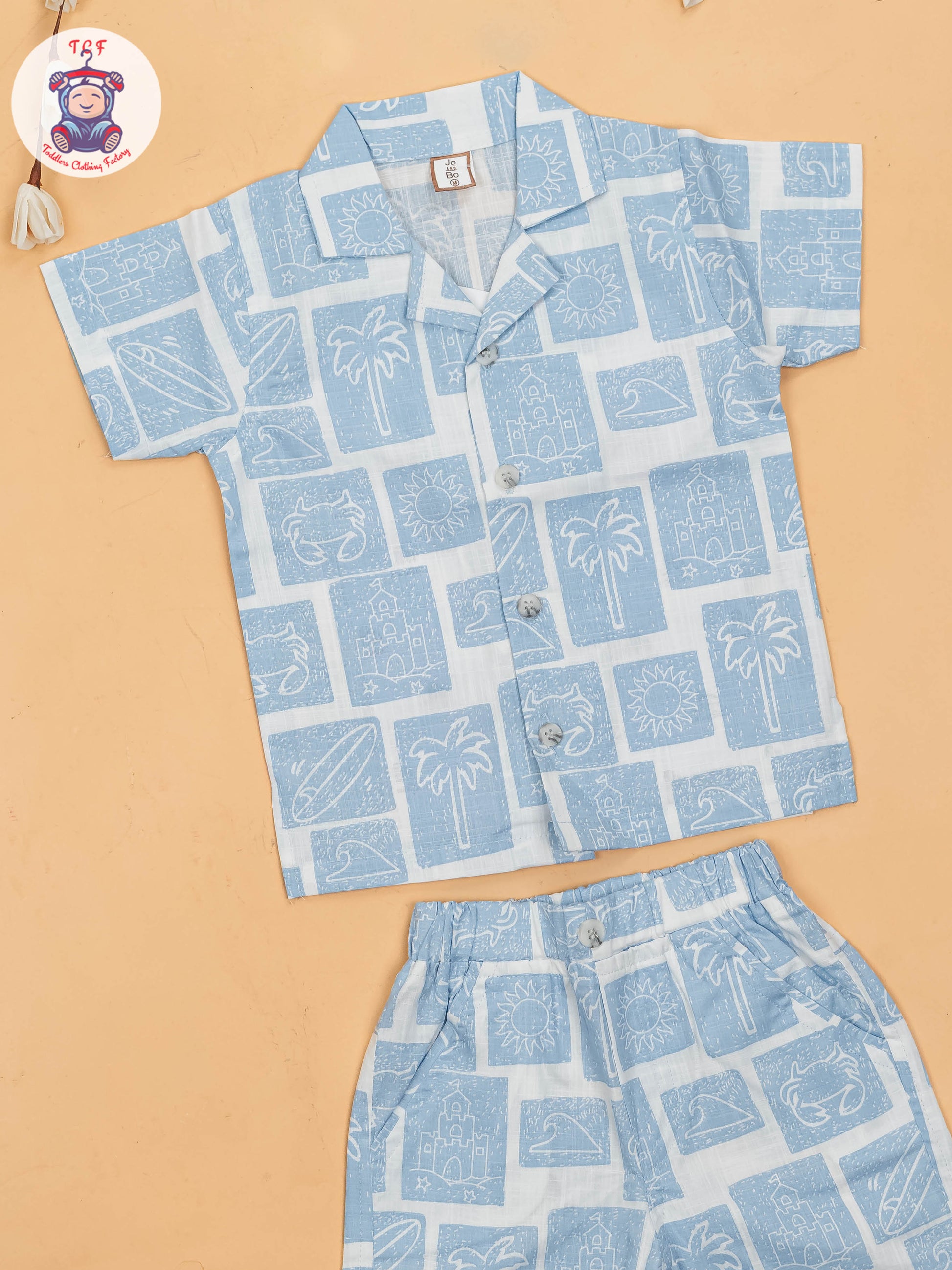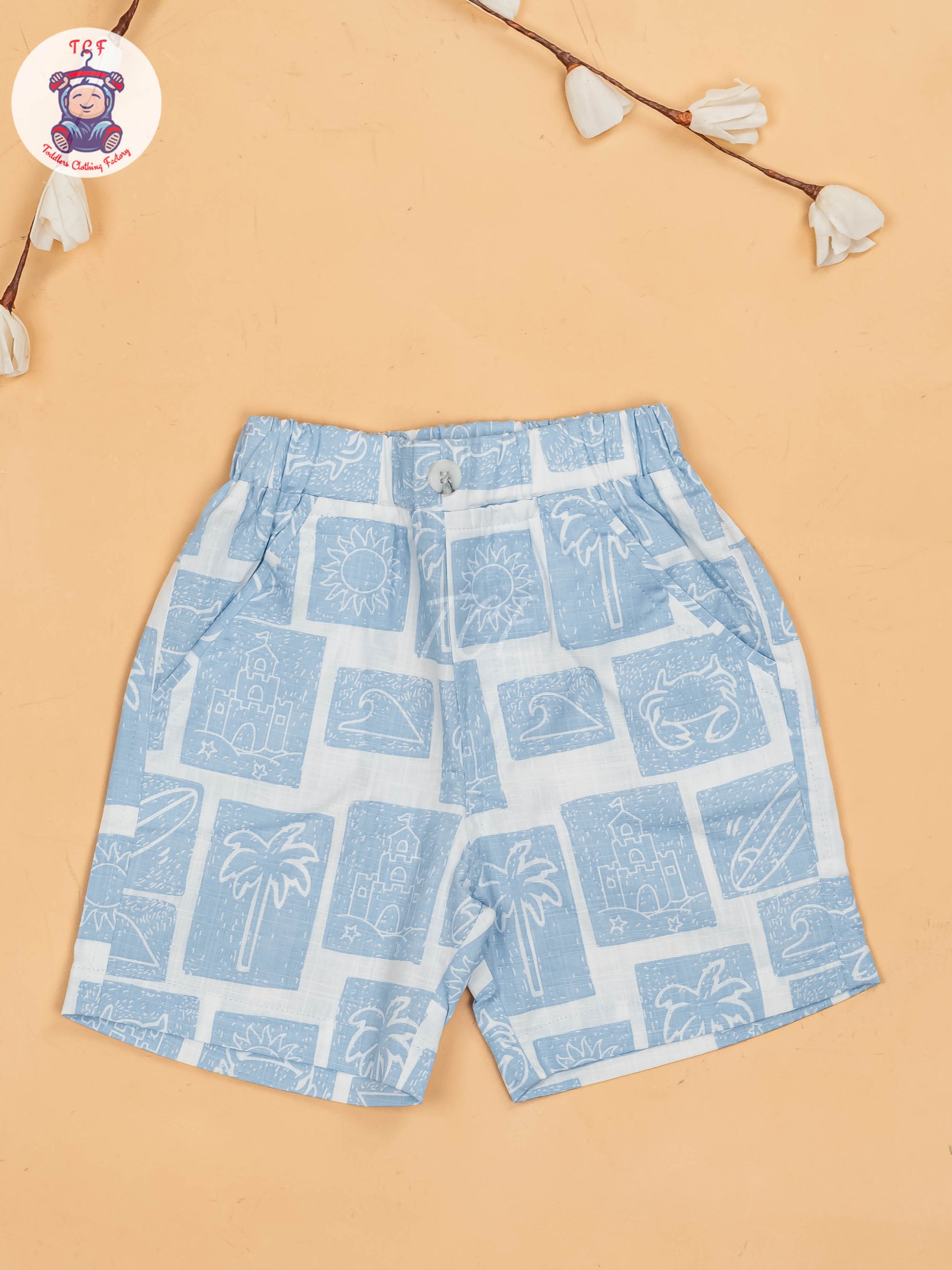 Blue & White - Boys Readymade Cotton Shirts & Shorts