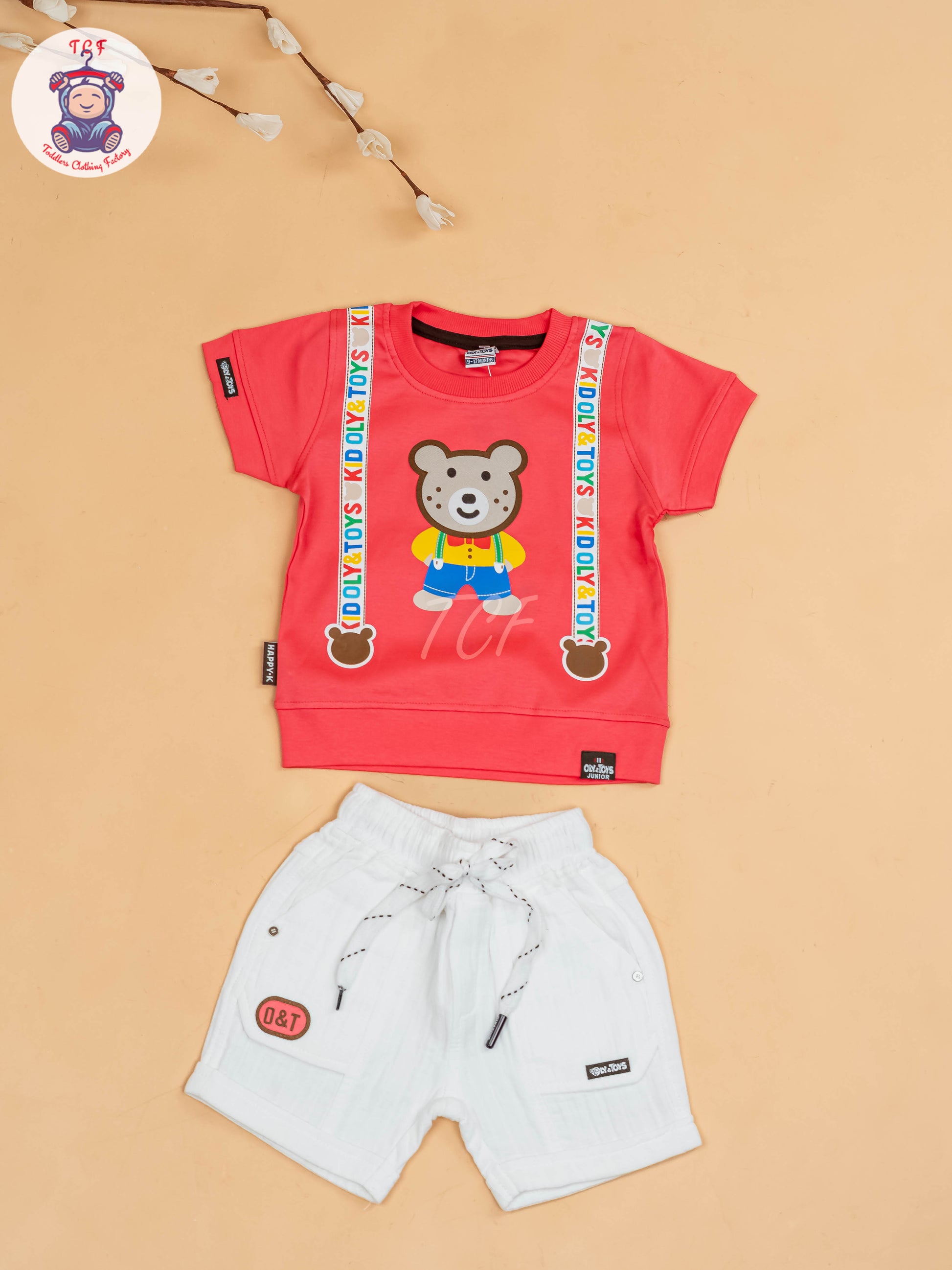 Pink & White - Boys Readymade T-Shirts & Shorts