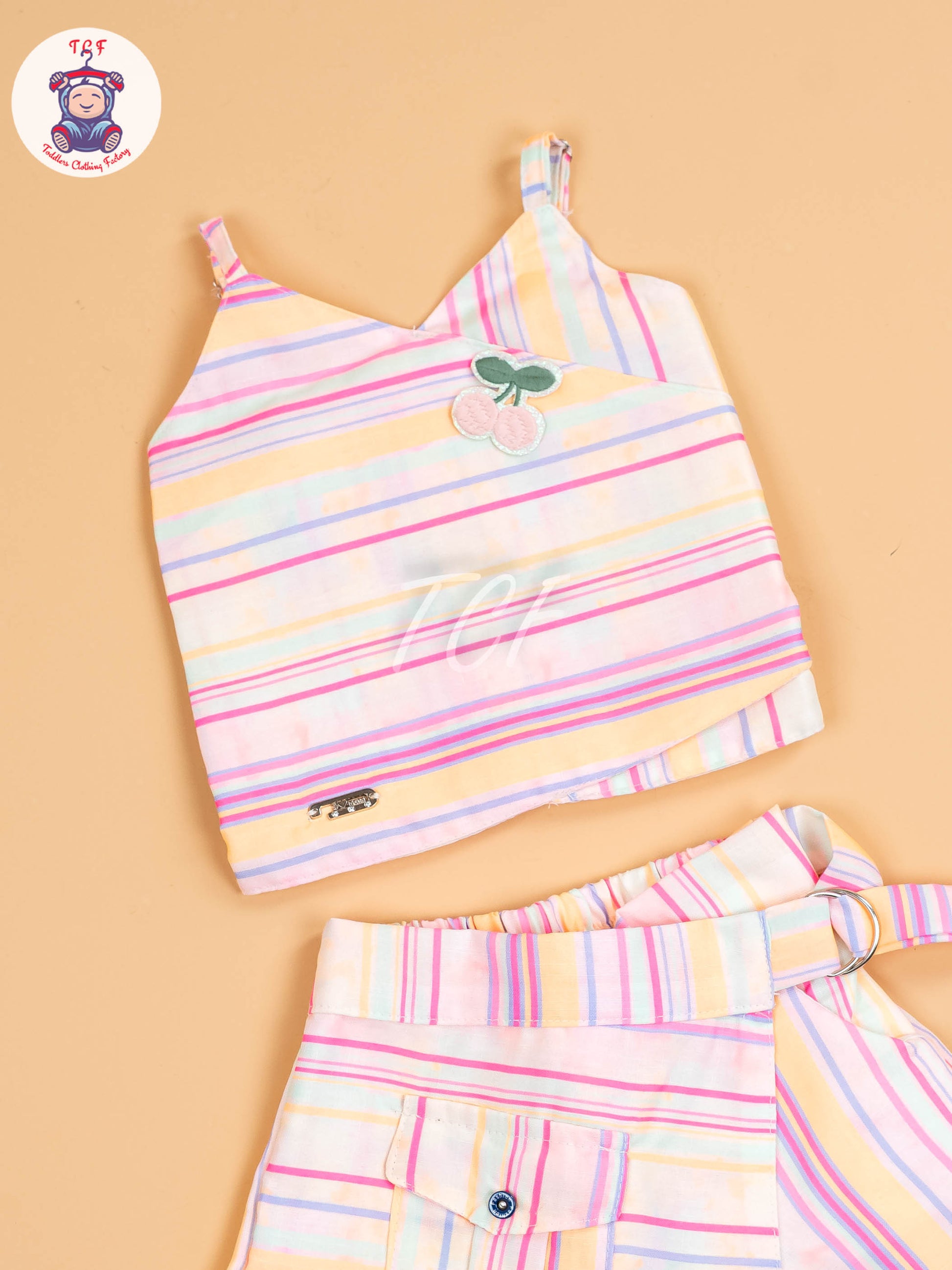 Green - Printed Pan Collor Neck Shirt With Shorts