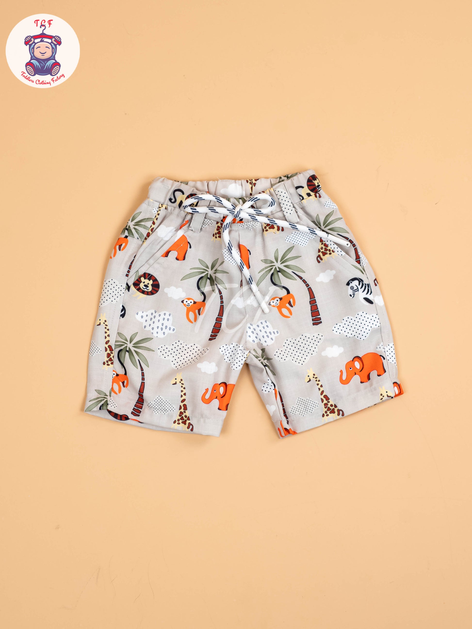Cream Animal Printed - Boys Shirt & Shorts