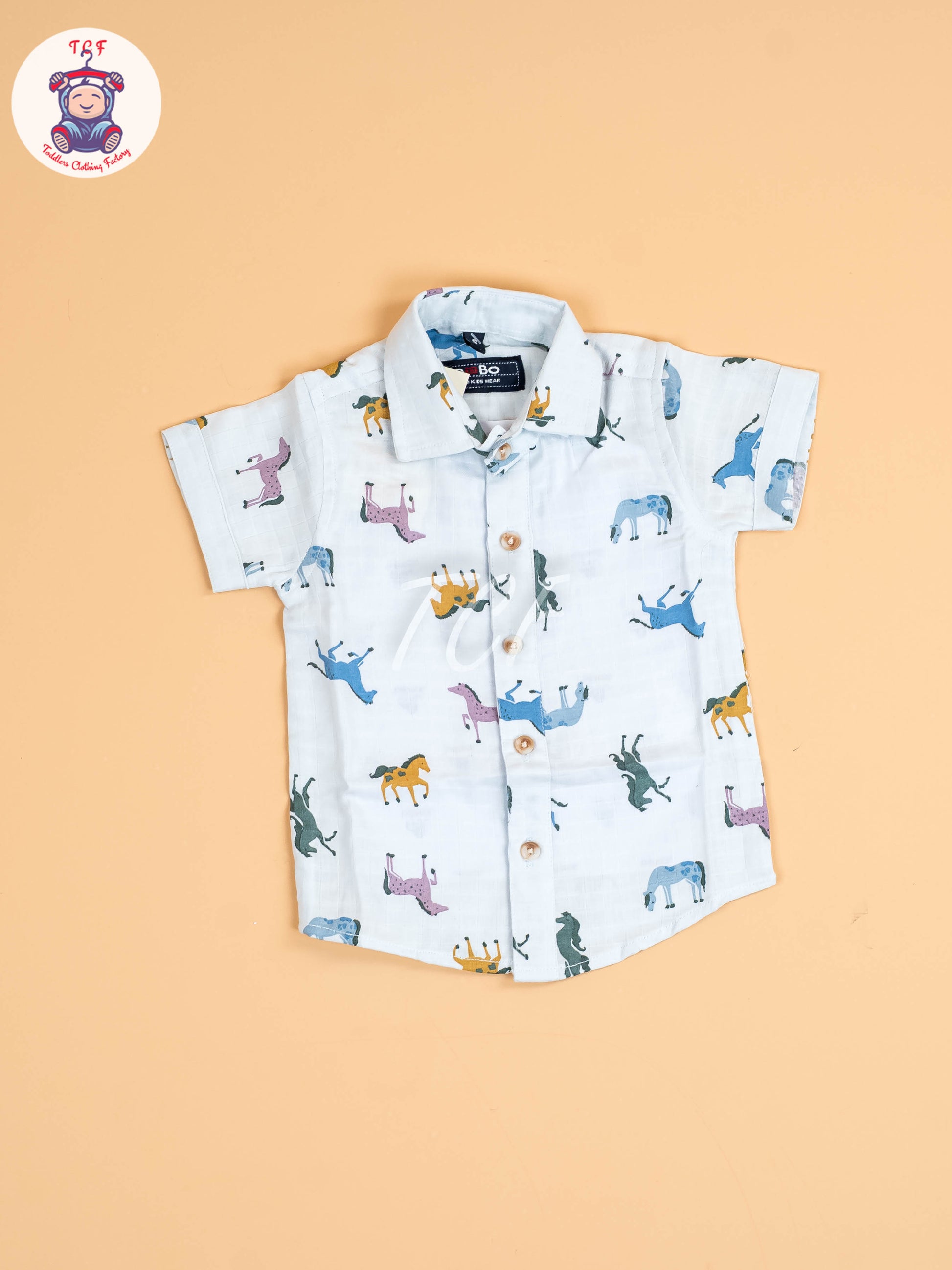 Sky Blue Animal Printed - Boys Cotton Shirt
