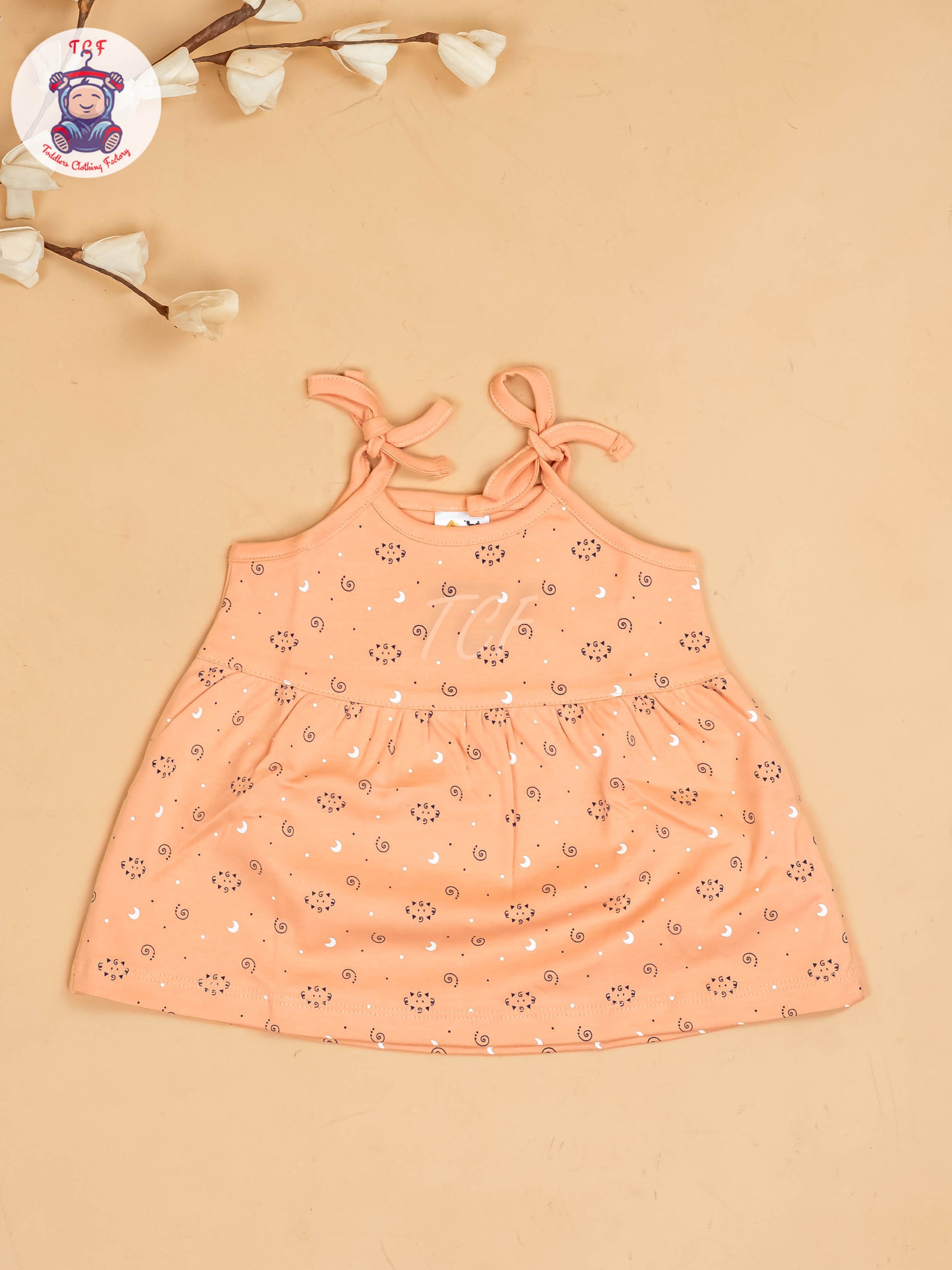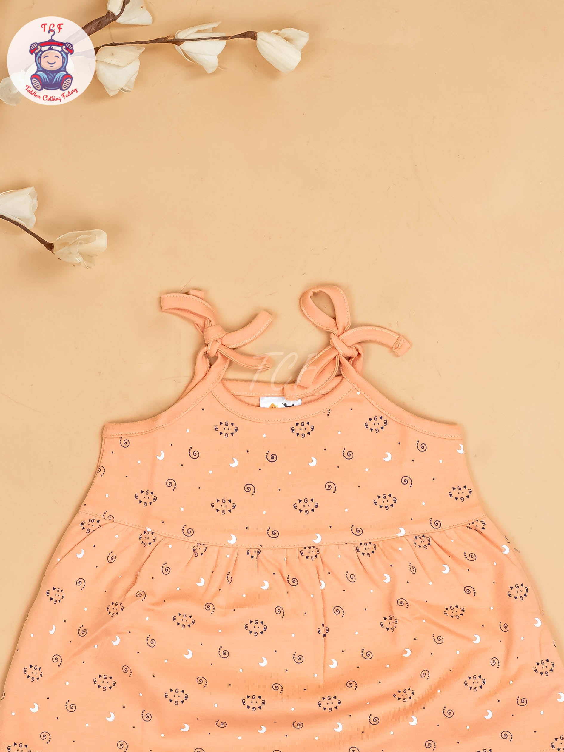 Peach -Girls Printed Ethnic Knot Frocks