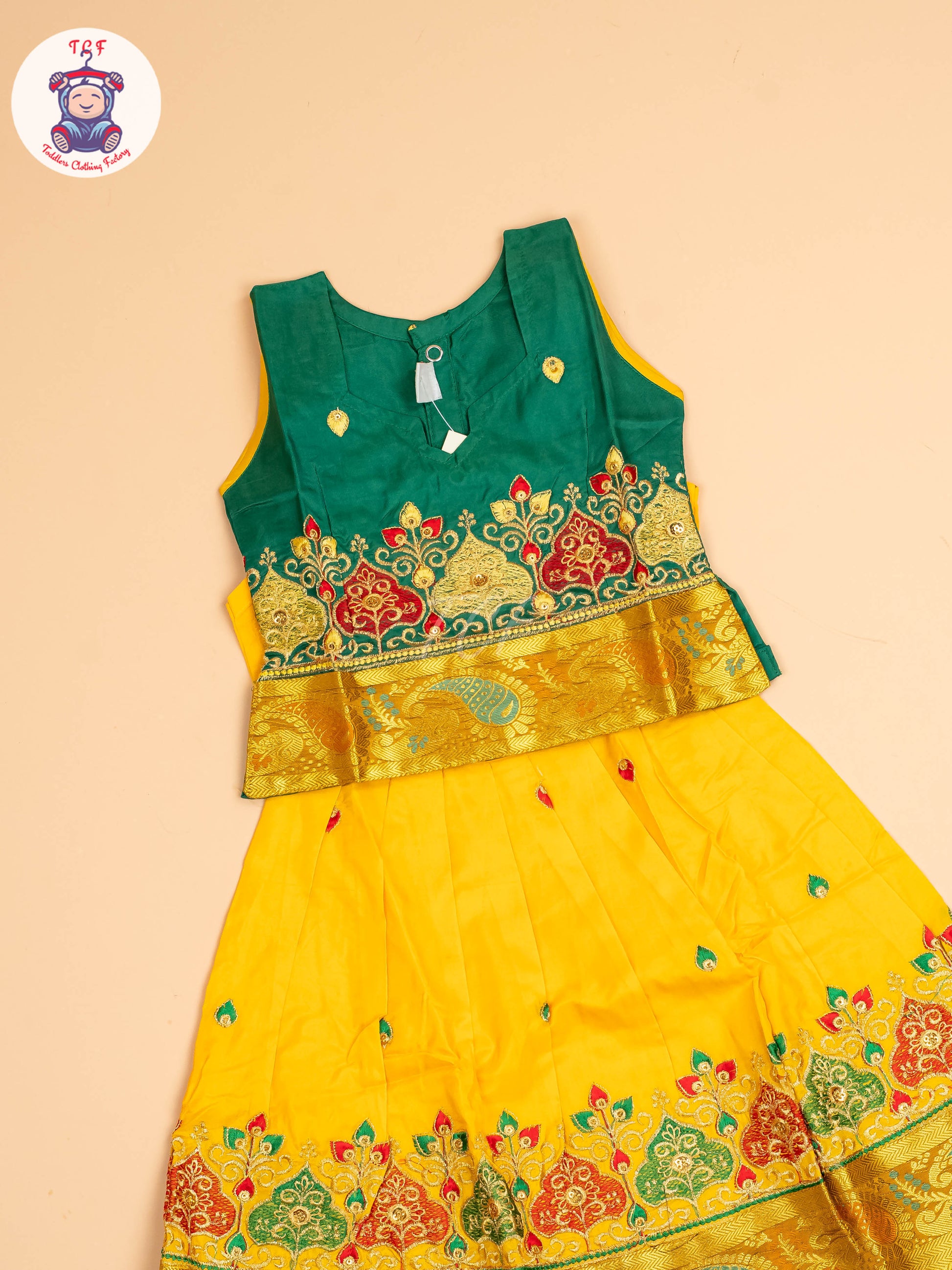 Green & Yellow - Embriodered Pavadai Sattai