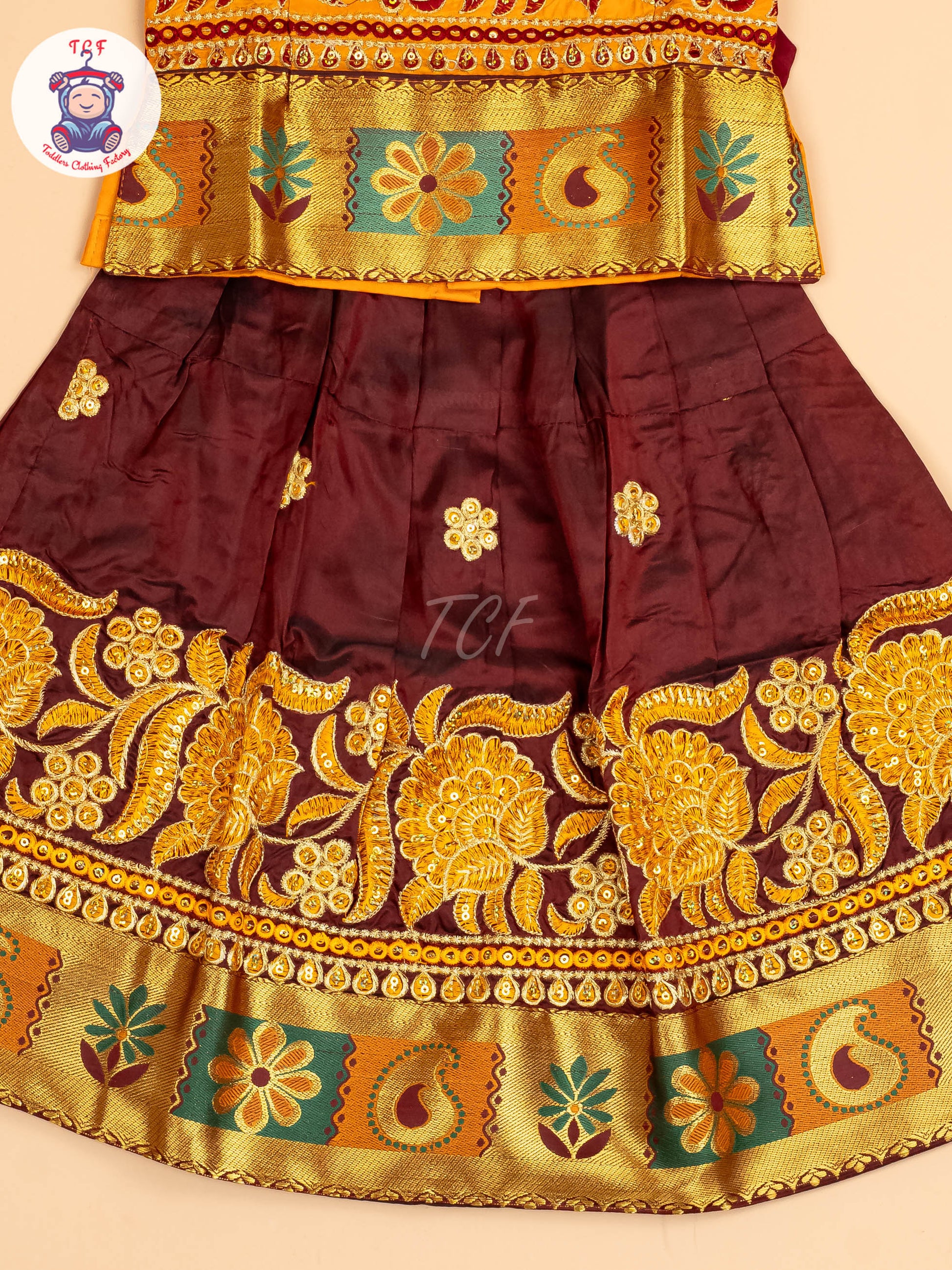 Mustard & Maroon - Embriodered Pavadai Sattai