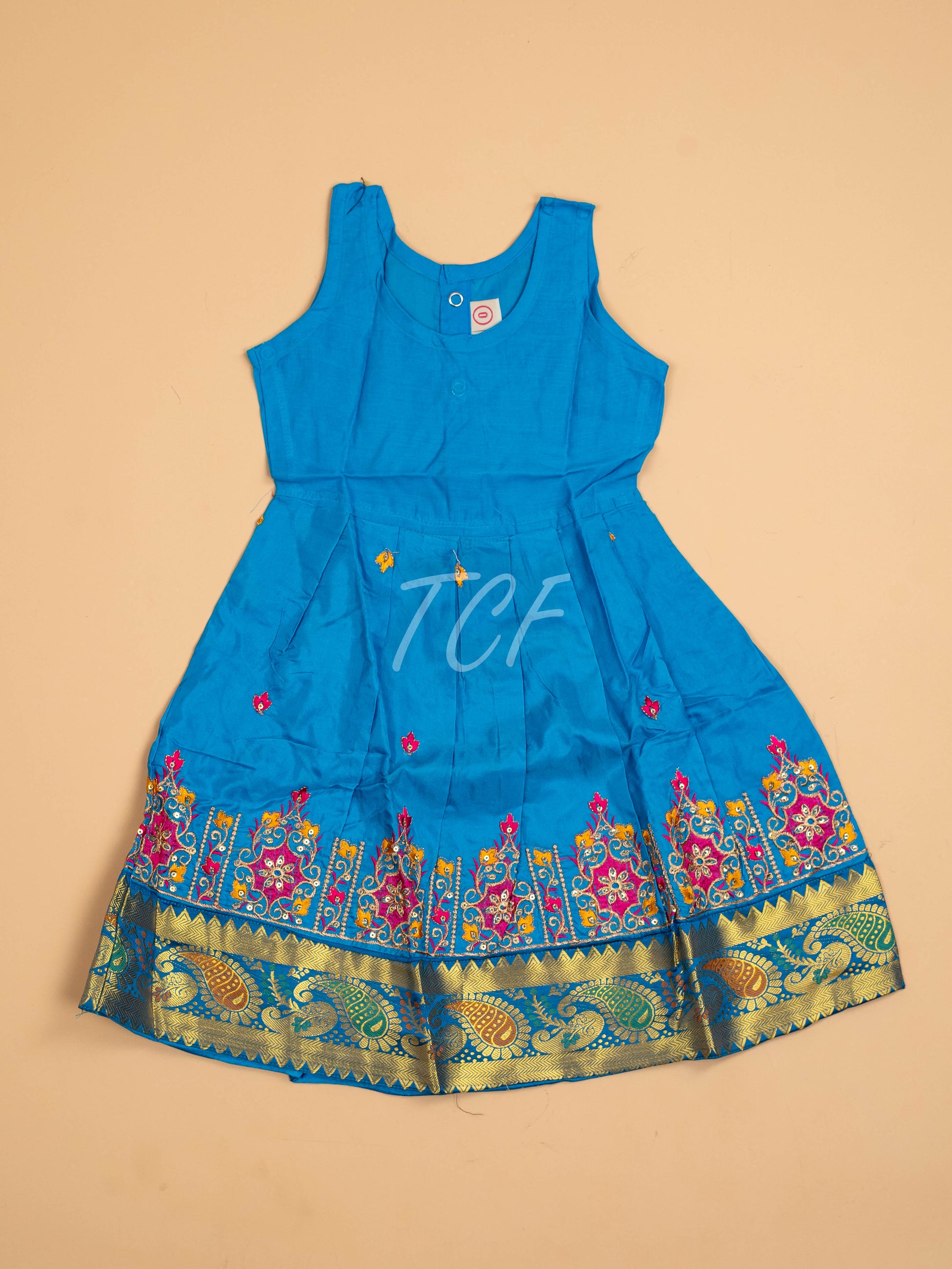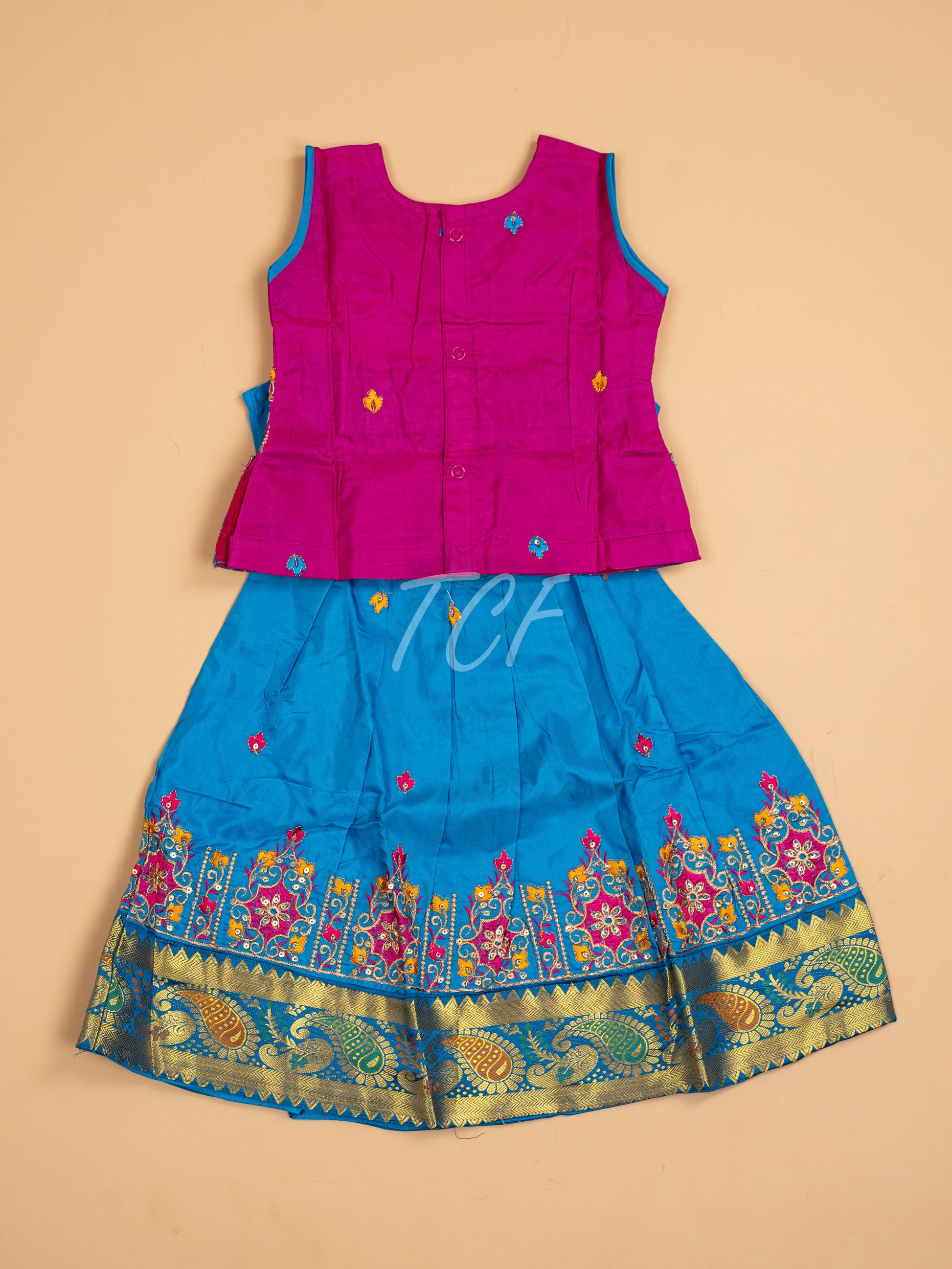 Magenta & Sky Blue - Embriodered Pavadai Sattai