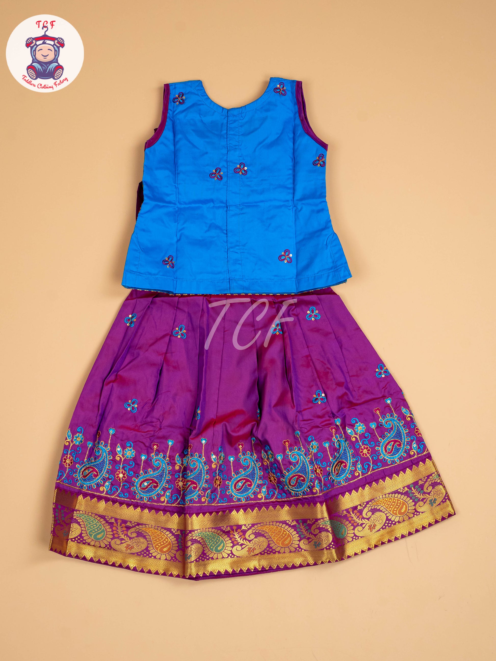 Blue & Purple - Embriodered Pavadai Sattai