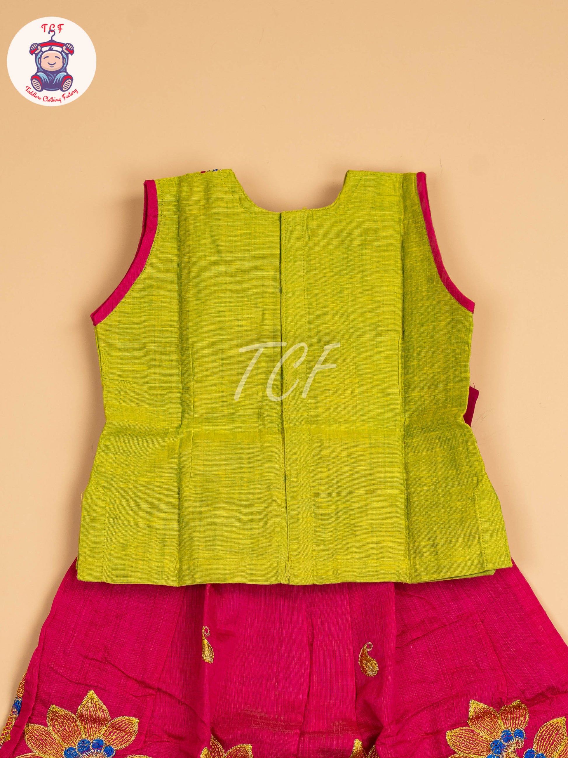 Lite Green & Pink - Embriodered Pavadai Sattai