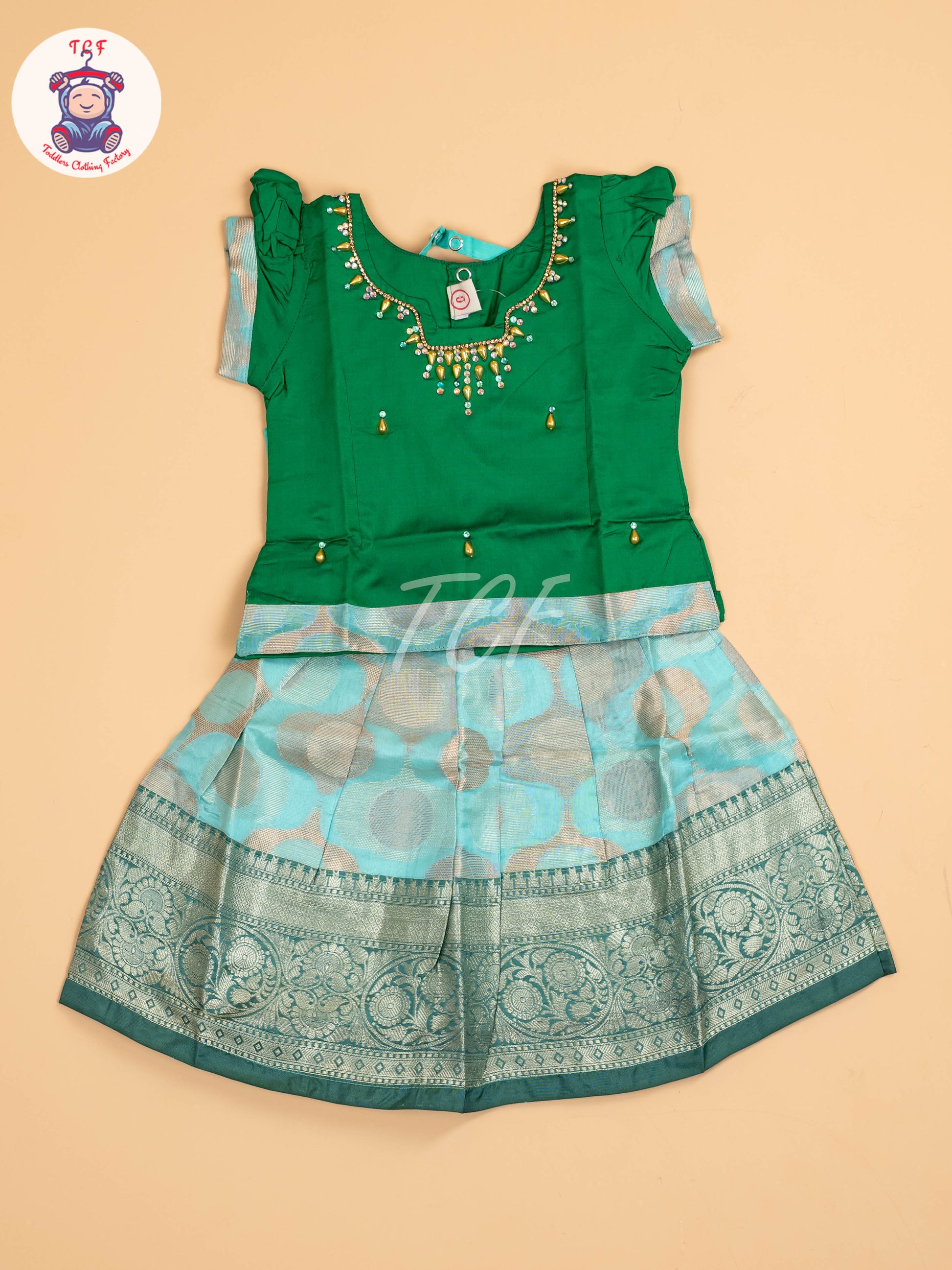 Dark Green & Teal Green - Pavadai Sattai
