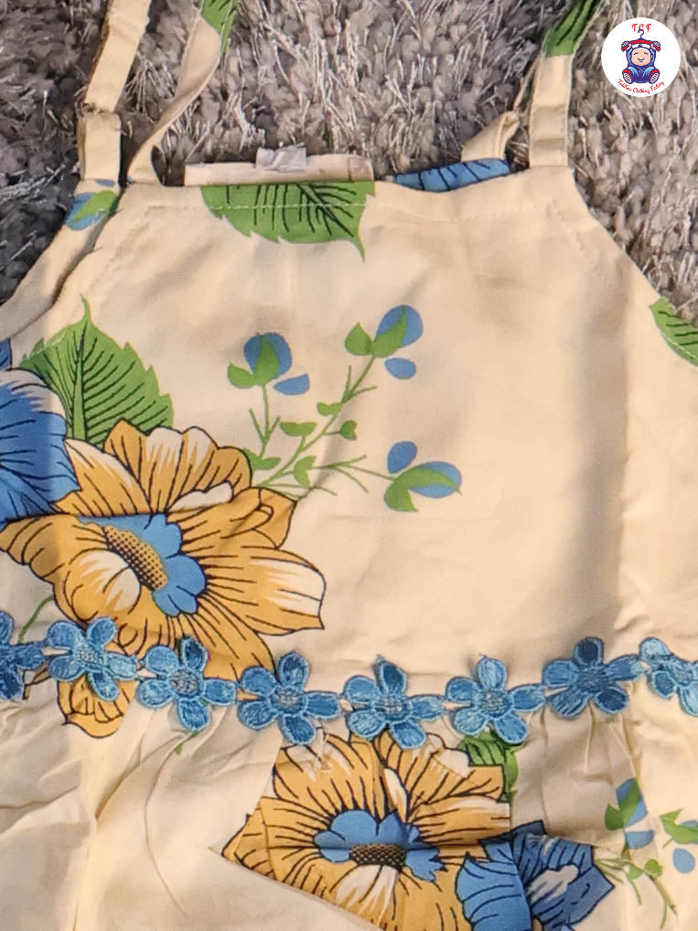 Cream & Blue - Floral Printed Flared Strappy Top & Shorts