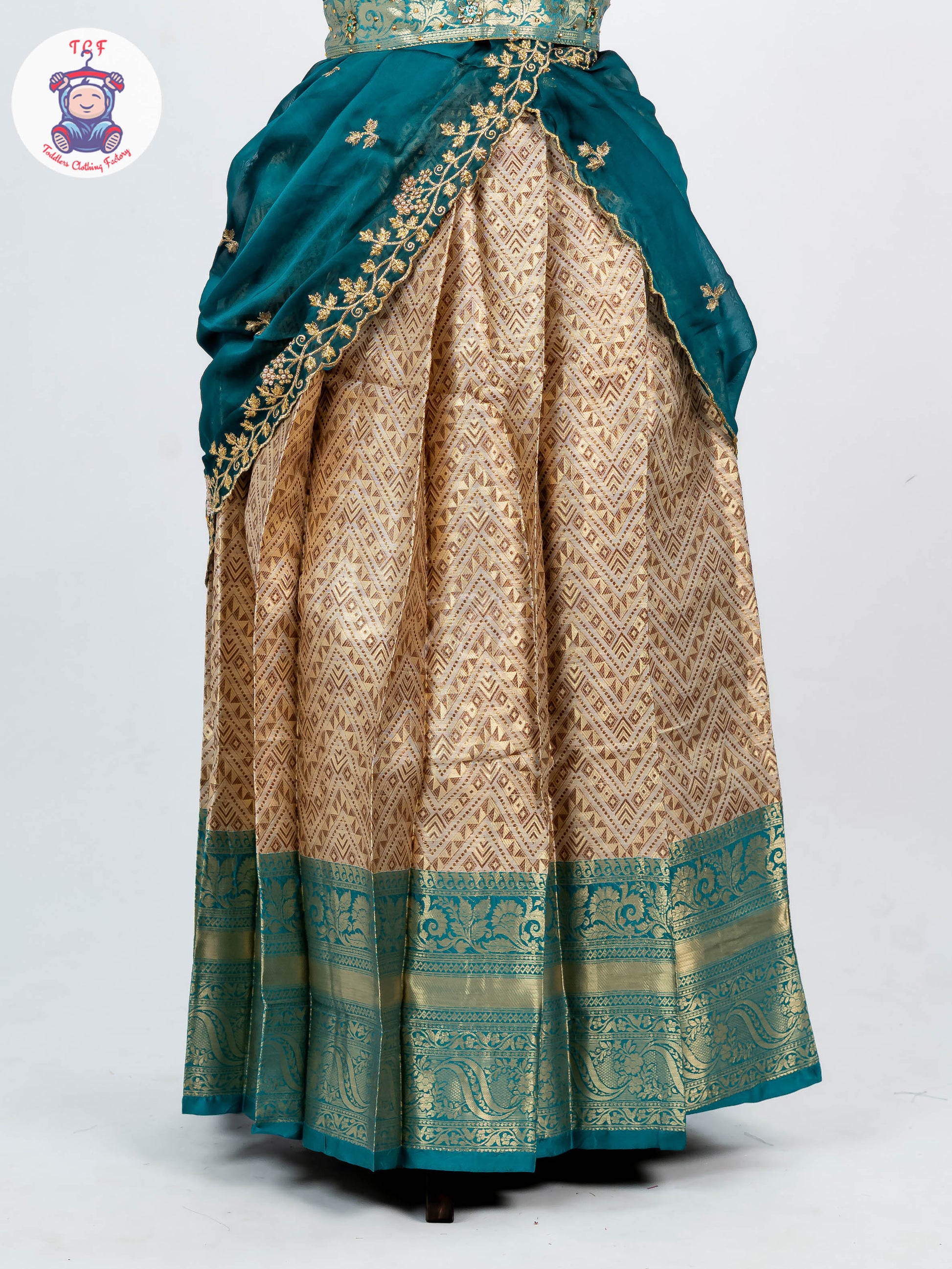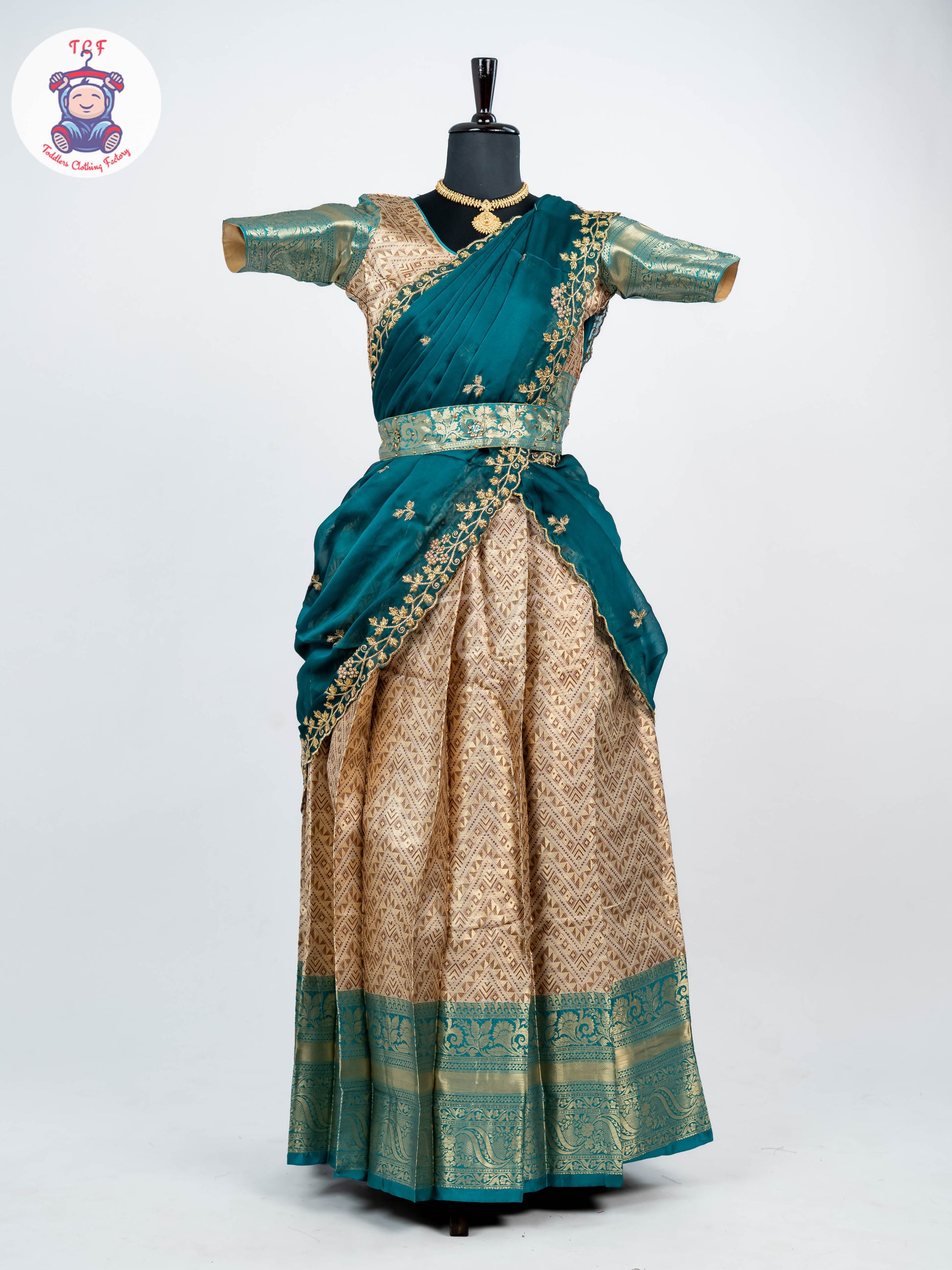 Girls Half Saree is a beautiful traditional South Indian outfit that blends cultural elegance with youthful charm. This three-piece ensemble consists of a flared skirt (pavadai or langa), a matching or contrasting blouse, and a graceful drape called voni or davani styled like a saree pallu. Crafted from rich fabrics such as silk, cotton silk, or brocade, and adorned with zari borders, embroidery, or traditional prints, the half saree offers a festive and elegant look while ensuring comfort. Perfect for festivals, weddings, cultural events, and special occasions, it symbolizes tradition, grace, and the joyful transition of young girls into adolescence.