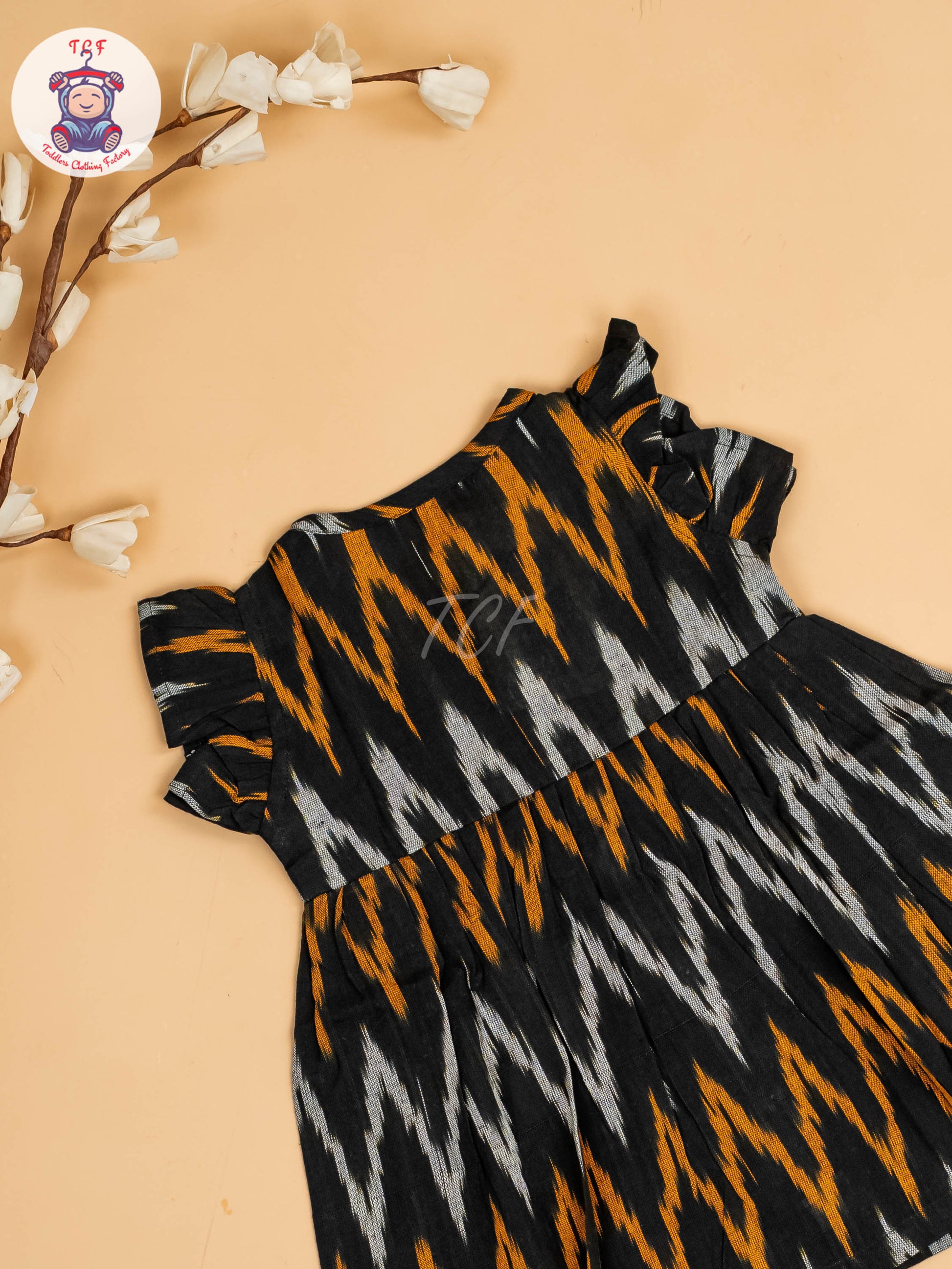 Ikat Frock - Traditional ikat patterns meet cloud-soft cotton in this playful frock, designed to keep your little one comfy and cheerful all day long. Twirl into tradition with our adorable Ikat frocks!. Perfectly blending comfort and style for your little one.