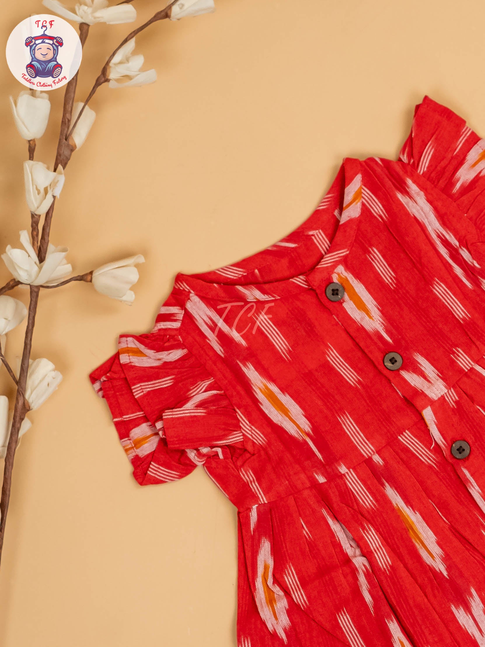 Red - Girls Readymade Ikat Frocks
