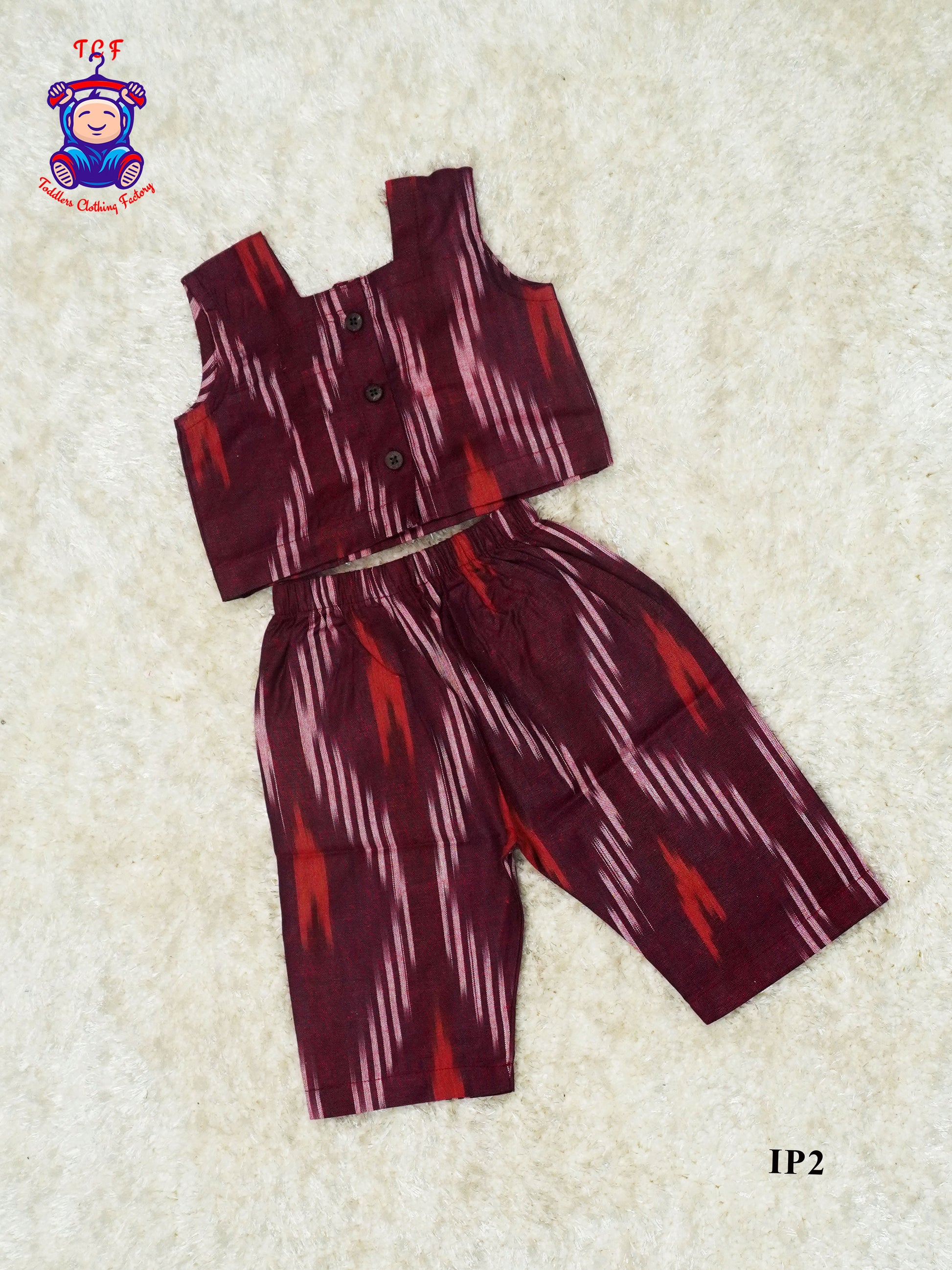 Maroon - Girls Readymade Ikat Pyjama Sets