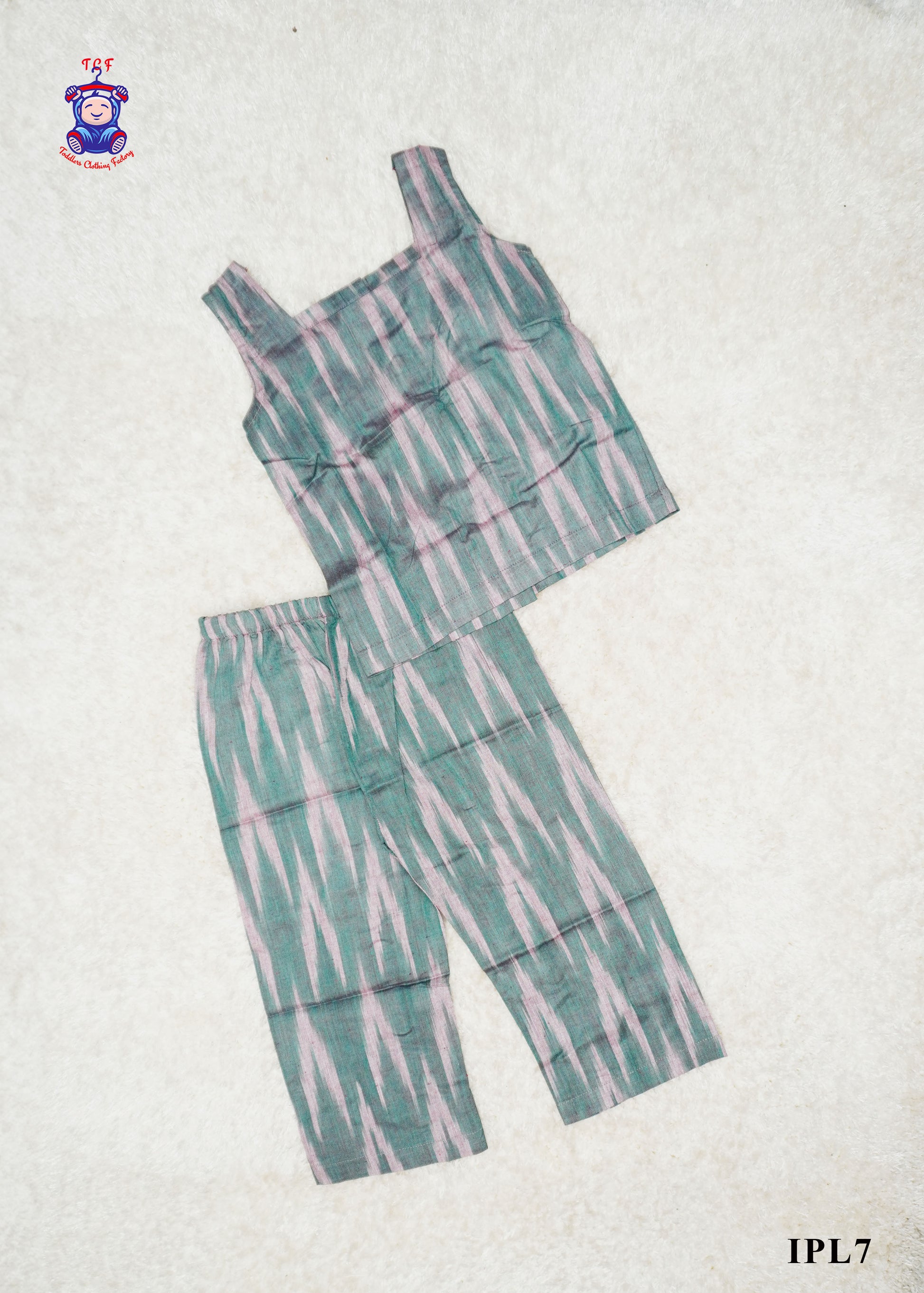 Teal Green - Girls Readymade Ikat Pyjama Sets