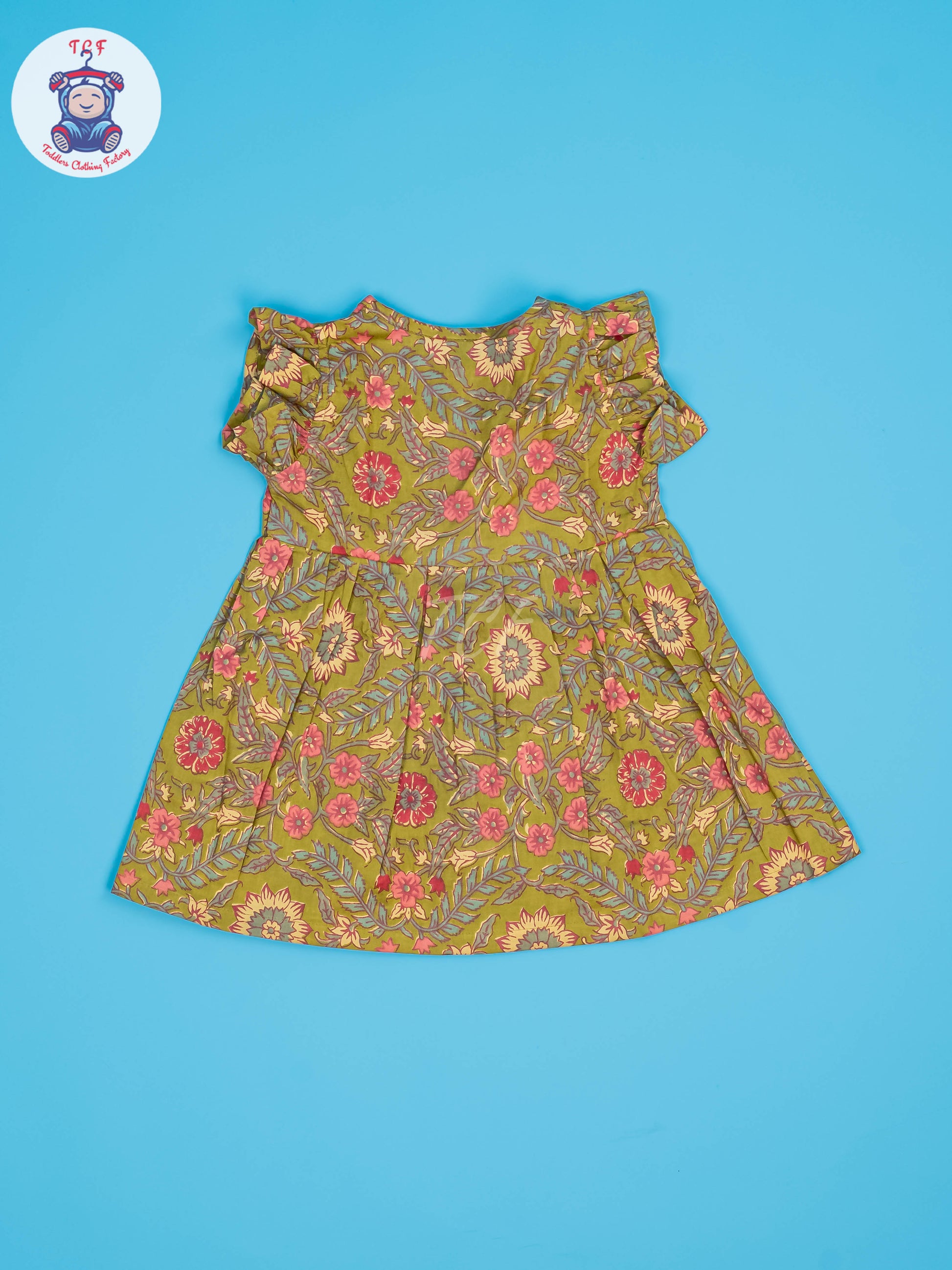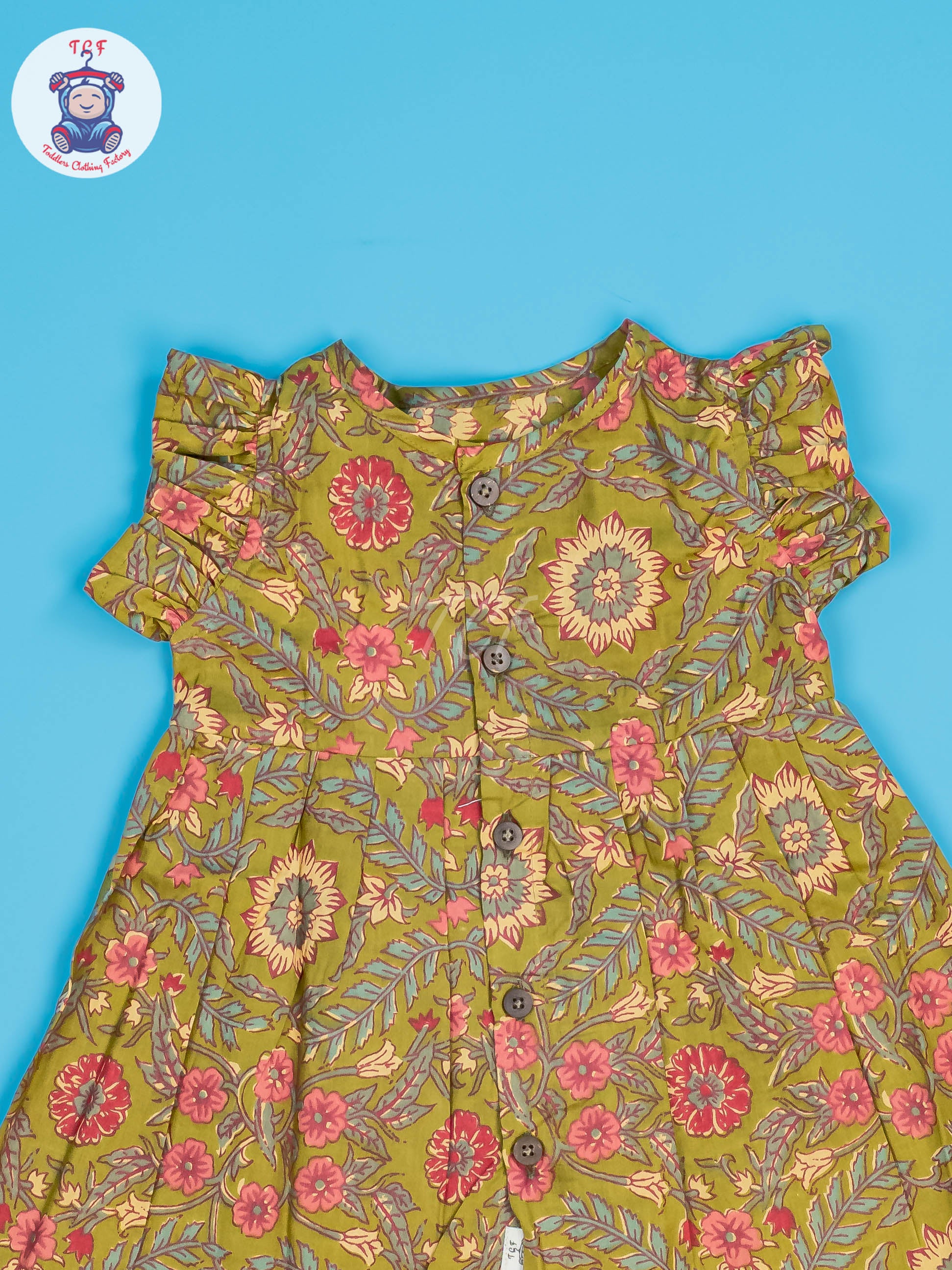 Lite Green & Mustard Floral - Girls Readymade Jaipuri Cotton Frocks