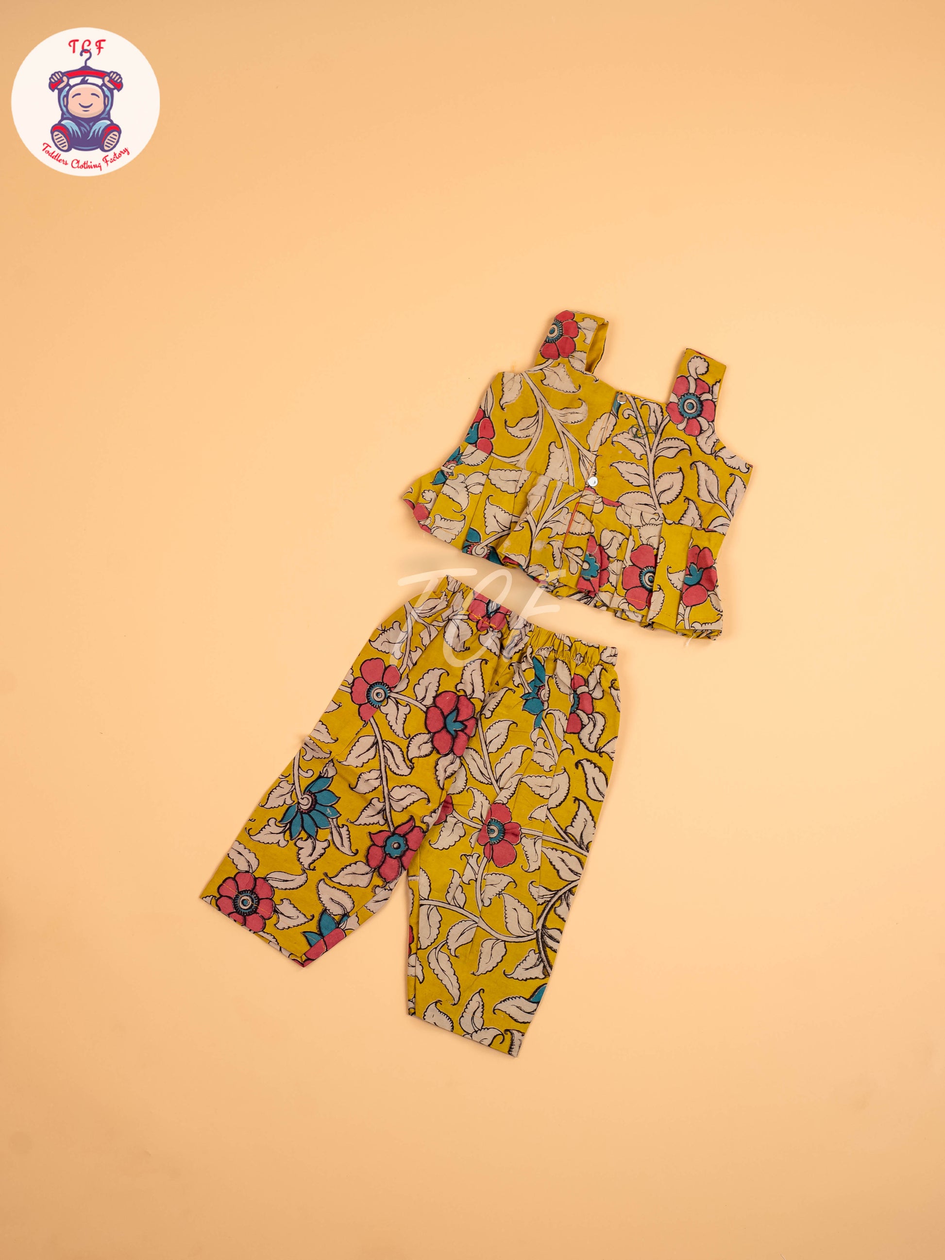 Mustard - Floral Printed Kalamkari Co-ords Sets
