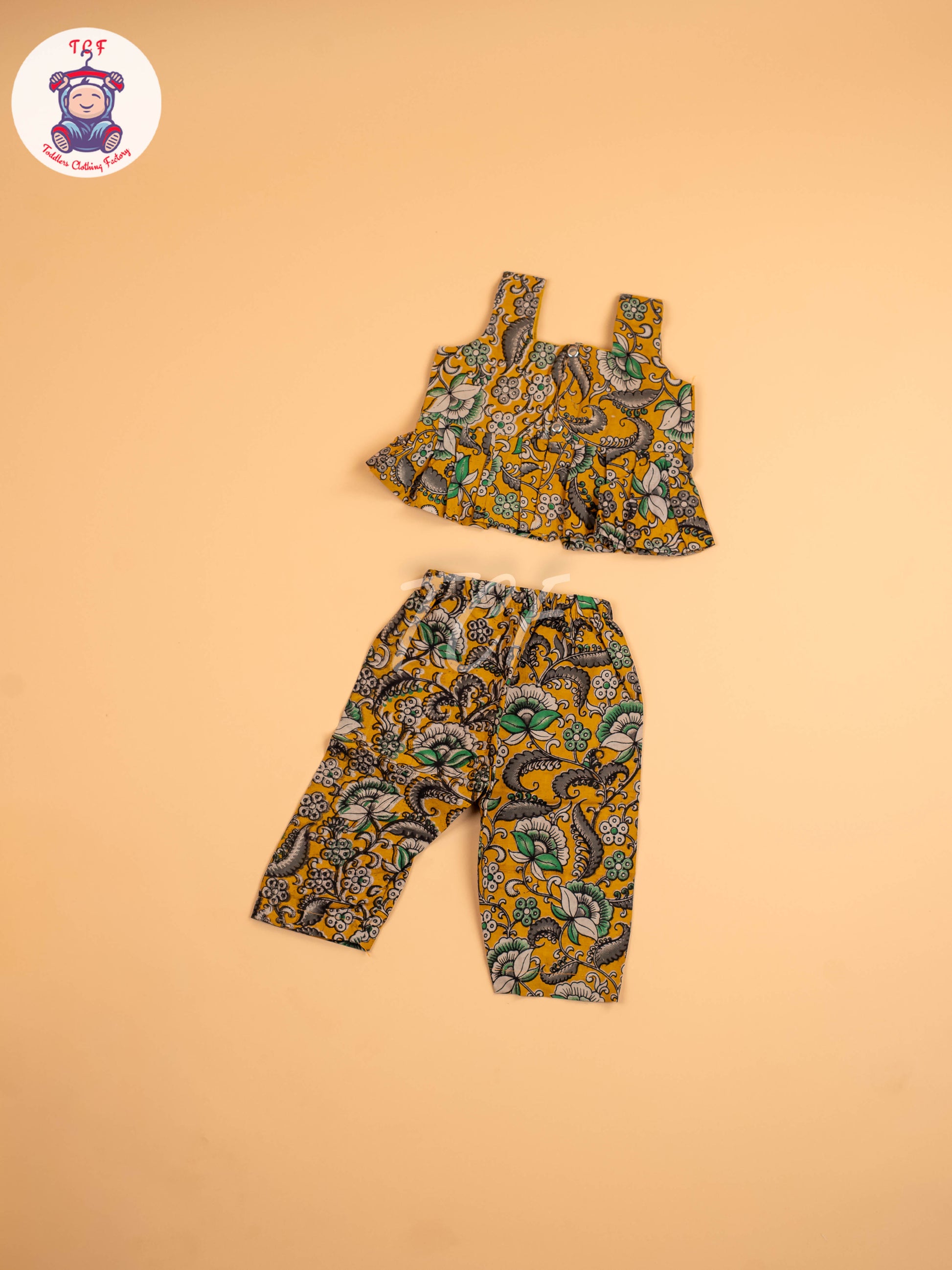 Mustard & Green - Floral Printed Kalamkari Co-ords Sets