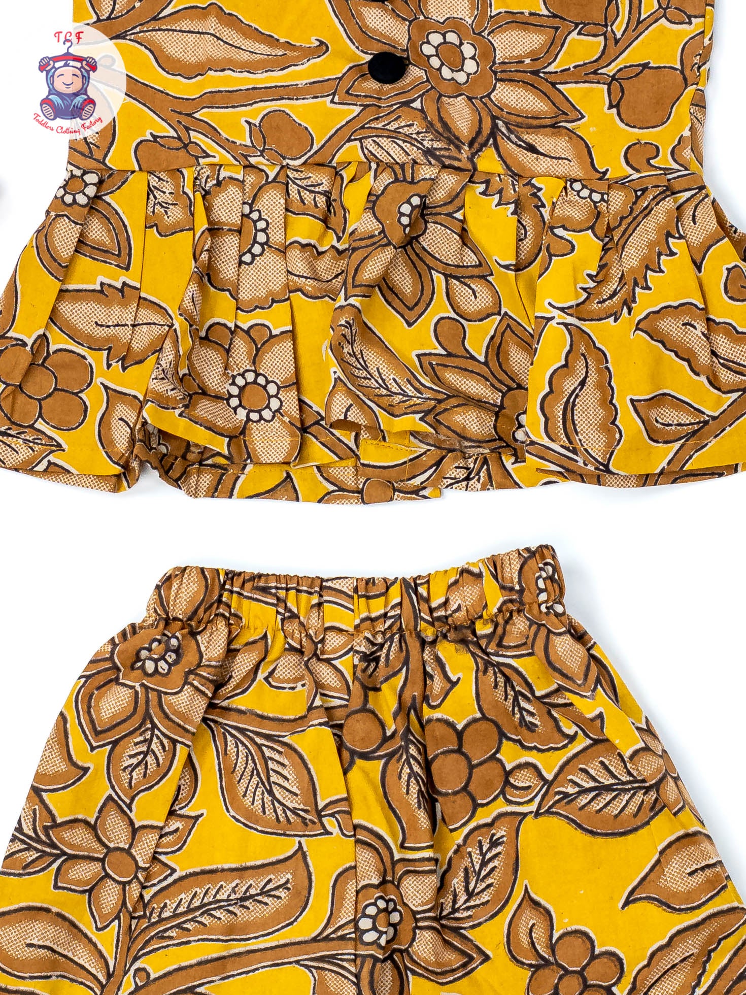 Mustard - Girls Readymade Floral Printed Kalamakari Sets