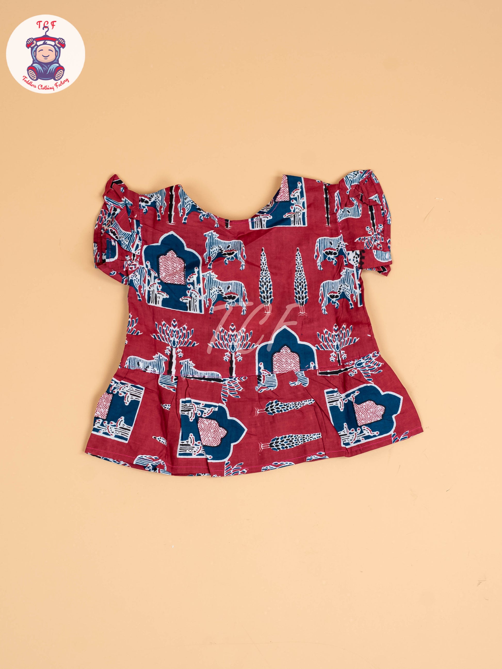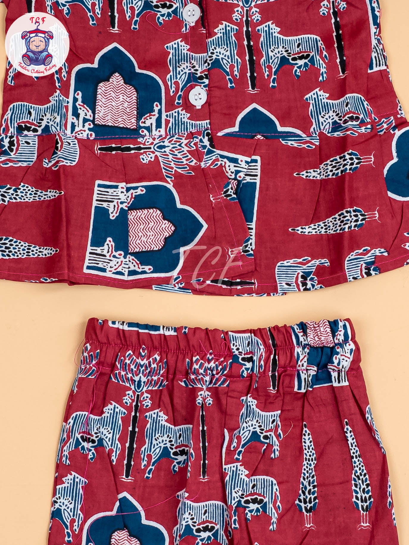 Maroon & Blue - Girls Readymade Co-ords Sets