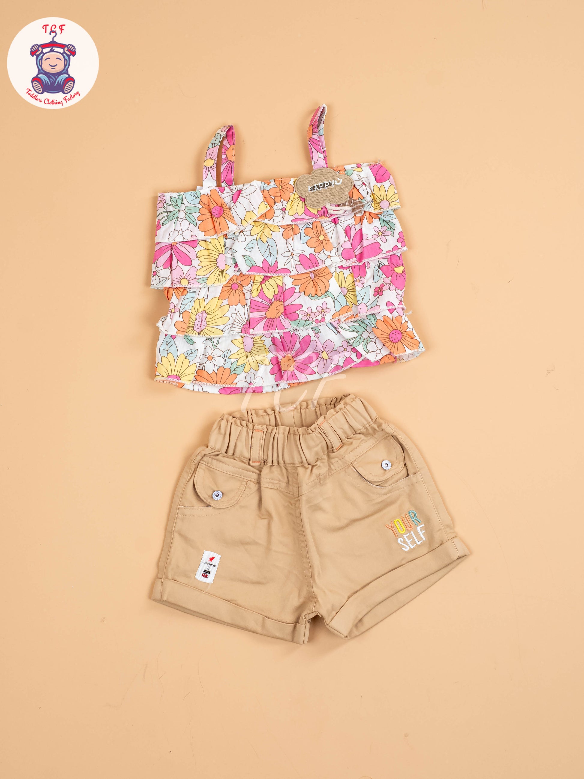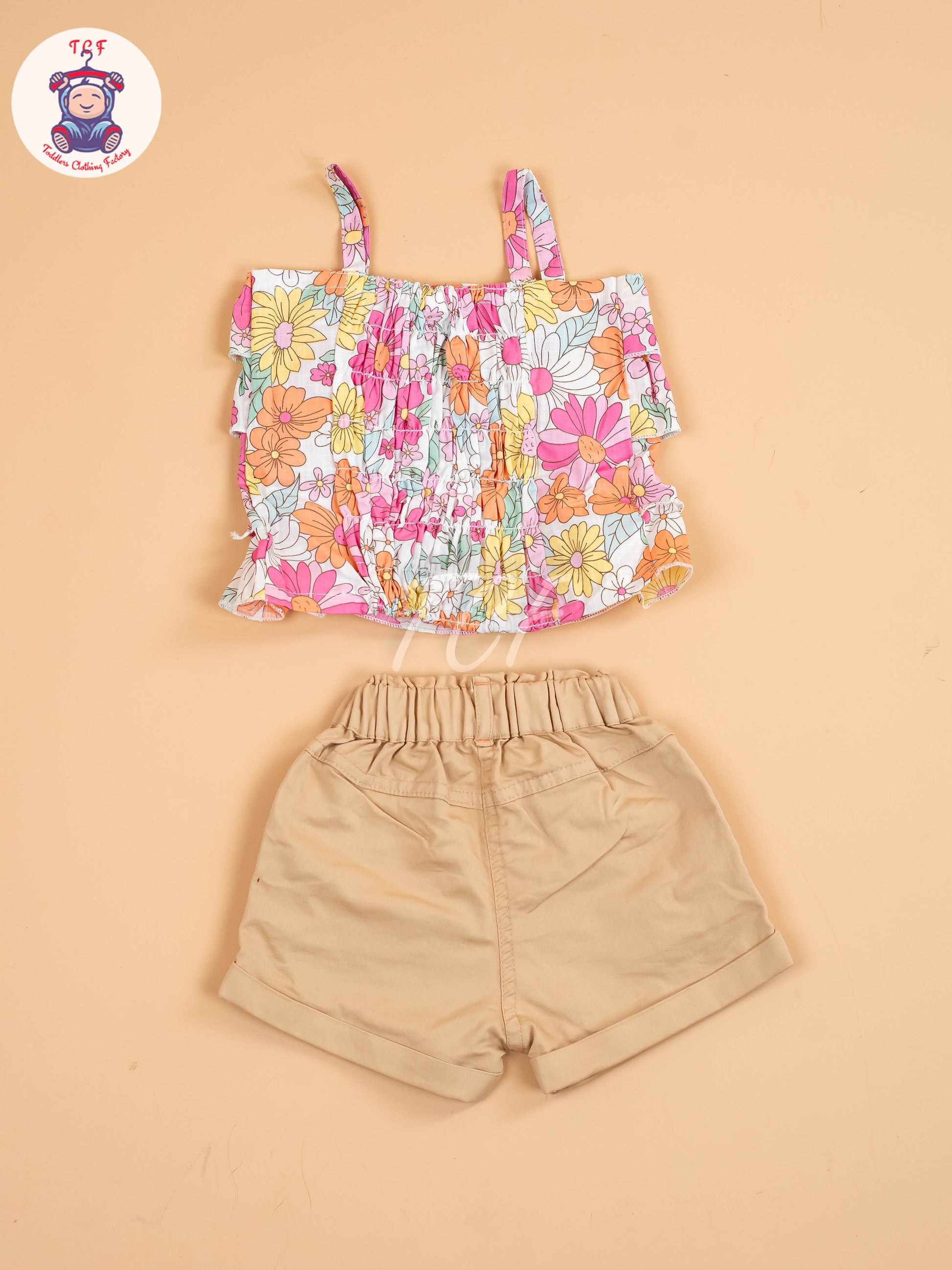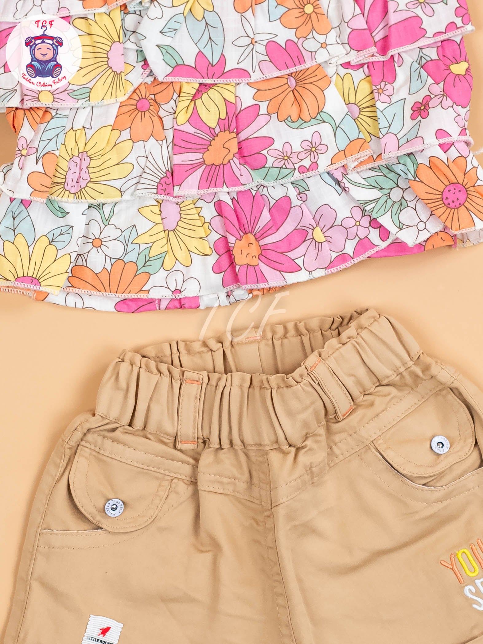 Pink & Orange Floral Printed - Girls Co-ords Sets