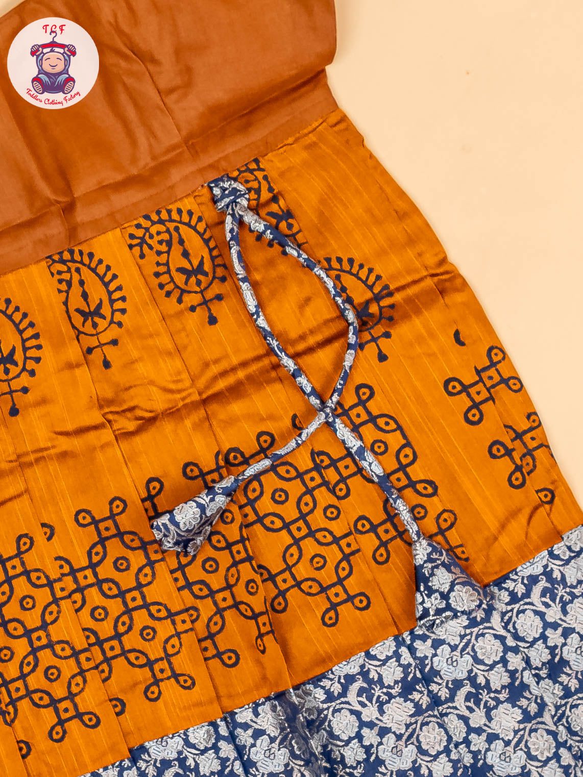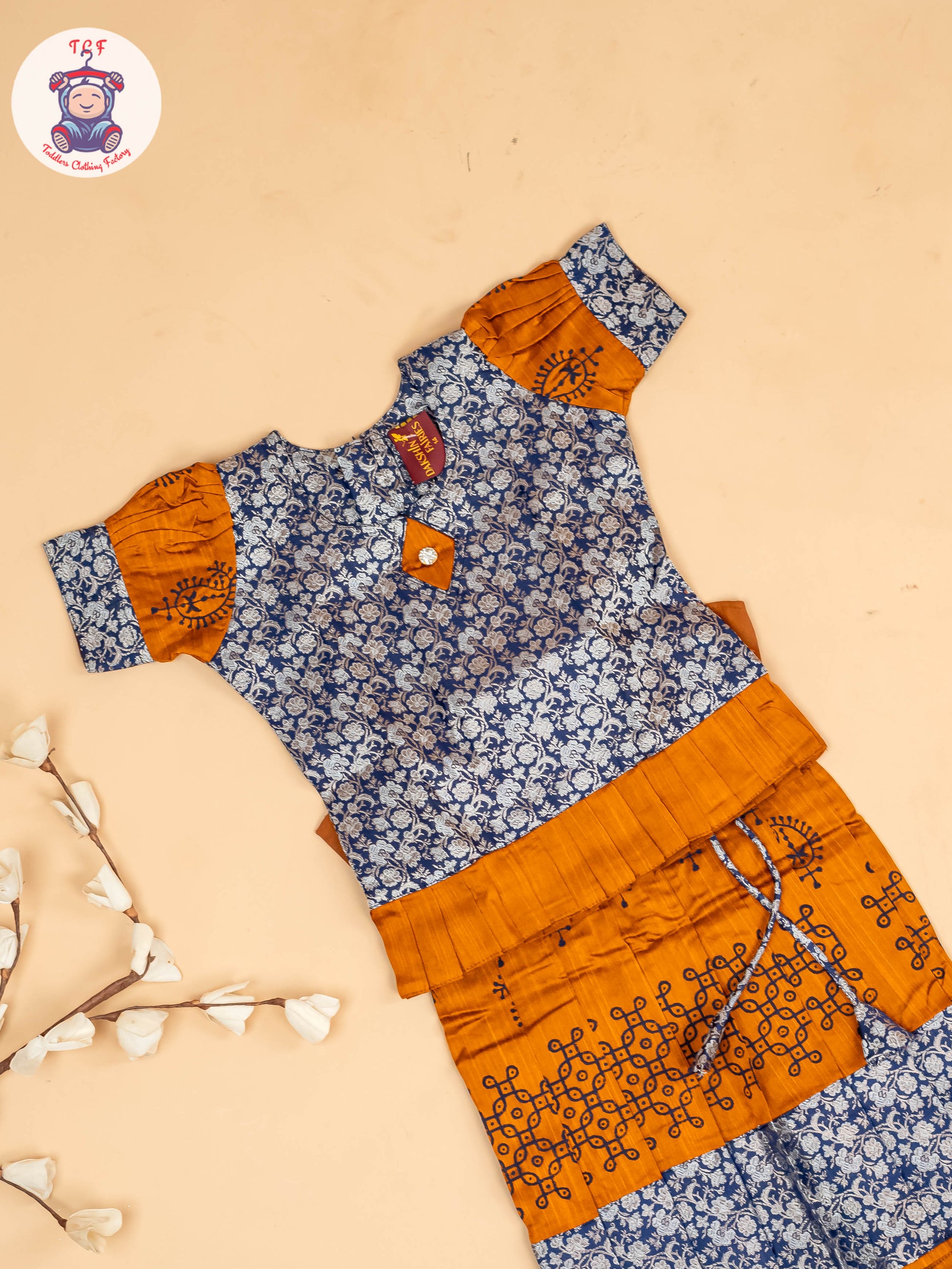 Blue & Mustard - Girls Readymade Pavadai Sattai