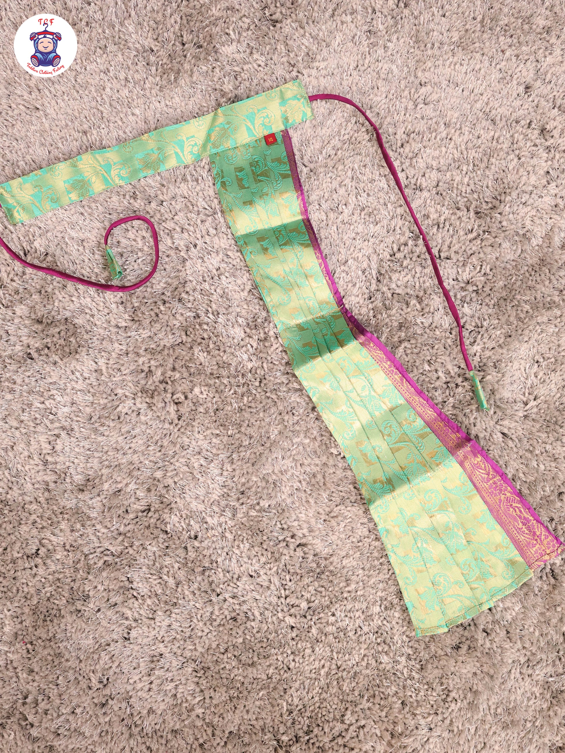 Purple & Teal Green - Girls Readymade Pavadai Sattai With Half Saree