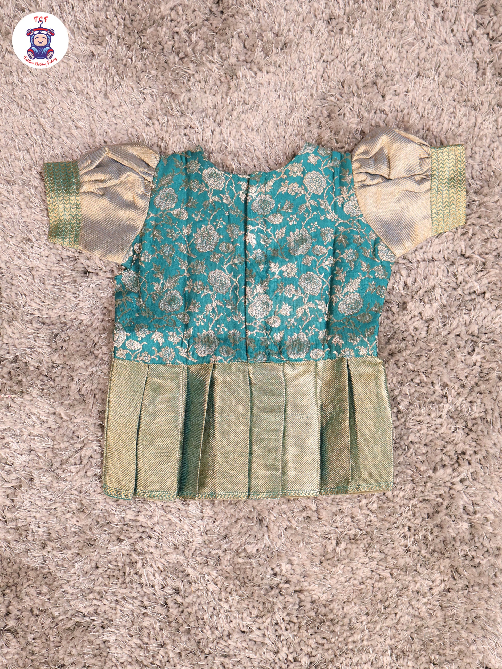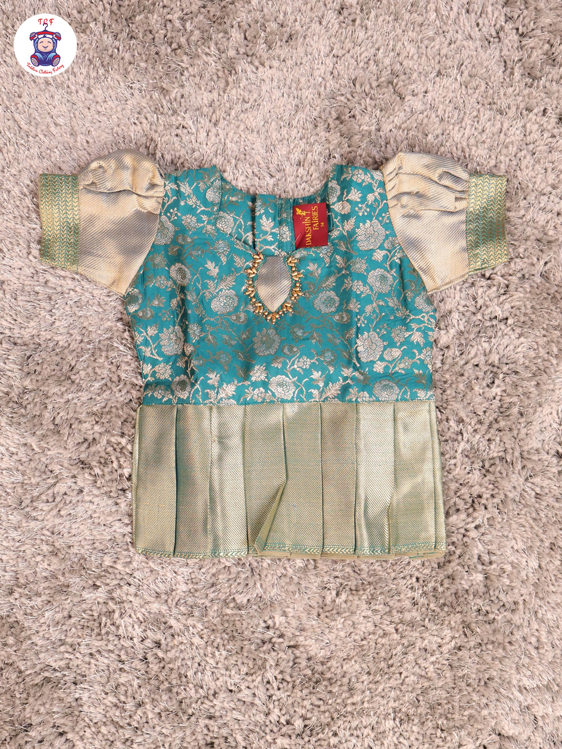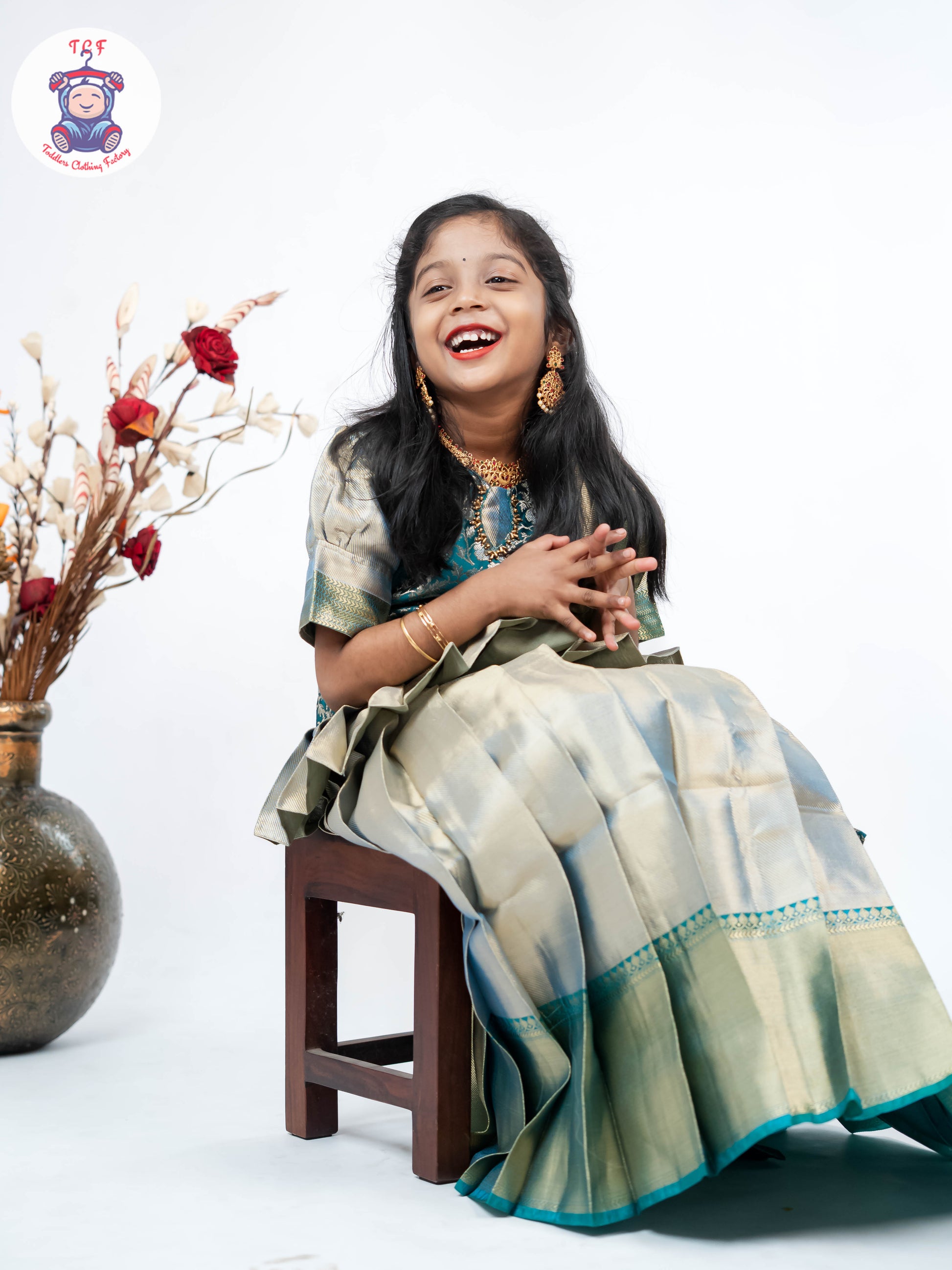 Bottle Green & Light Grey - Girls Readymade Pavadai Sattai With Half Saree