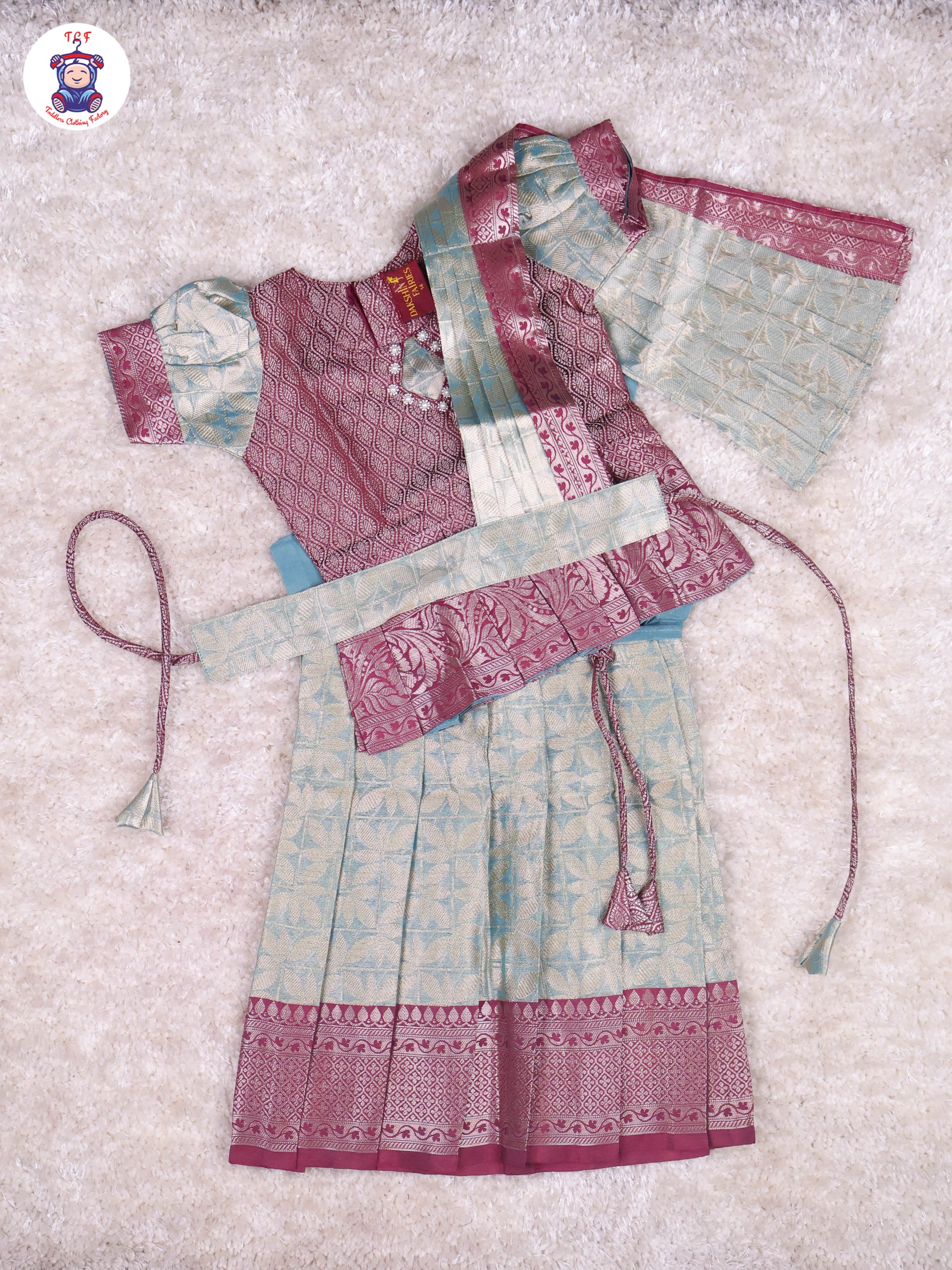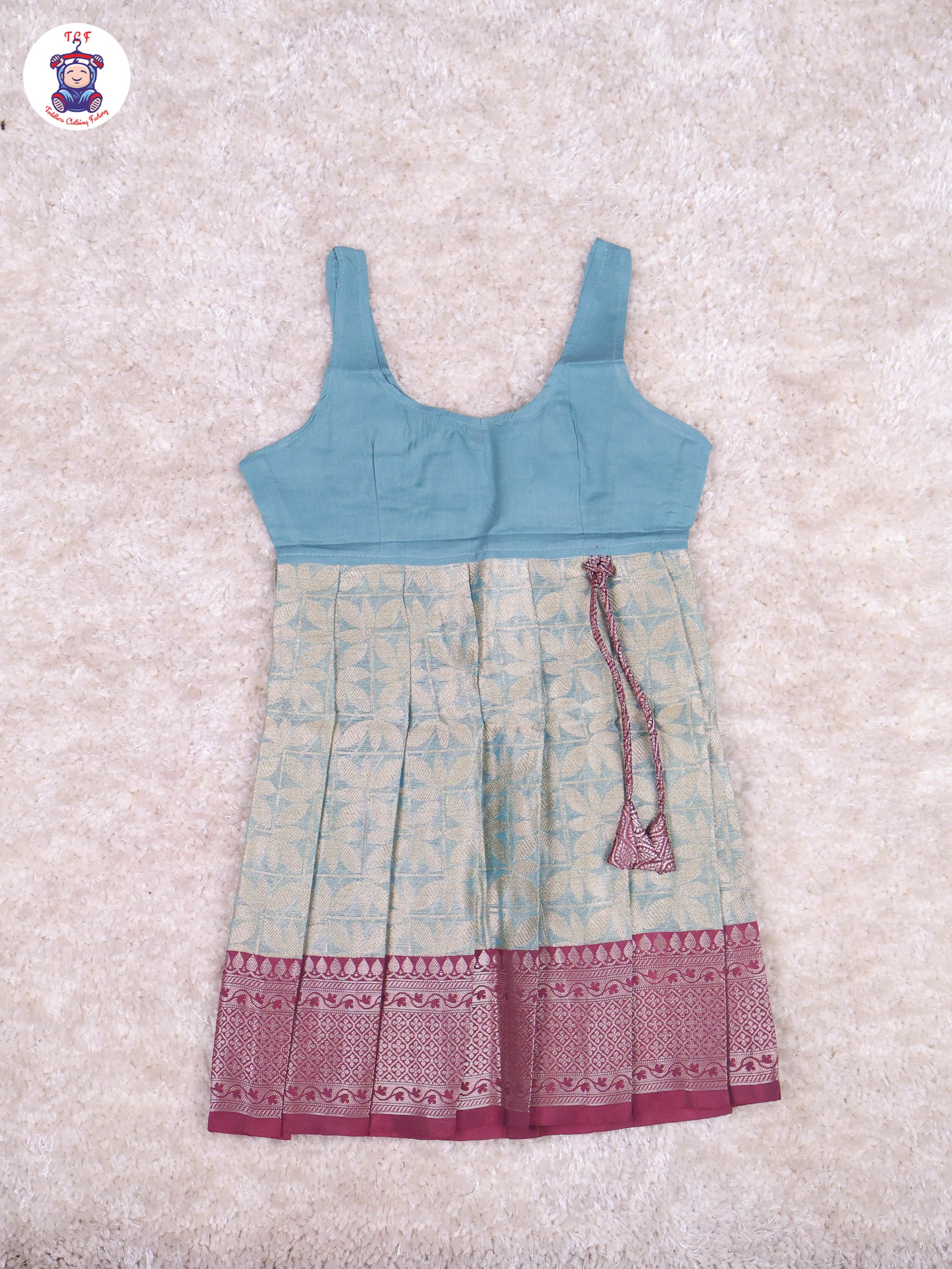 Maroon & Teal Blue - Girls Readymade Pavadai Sattai With Half Saree