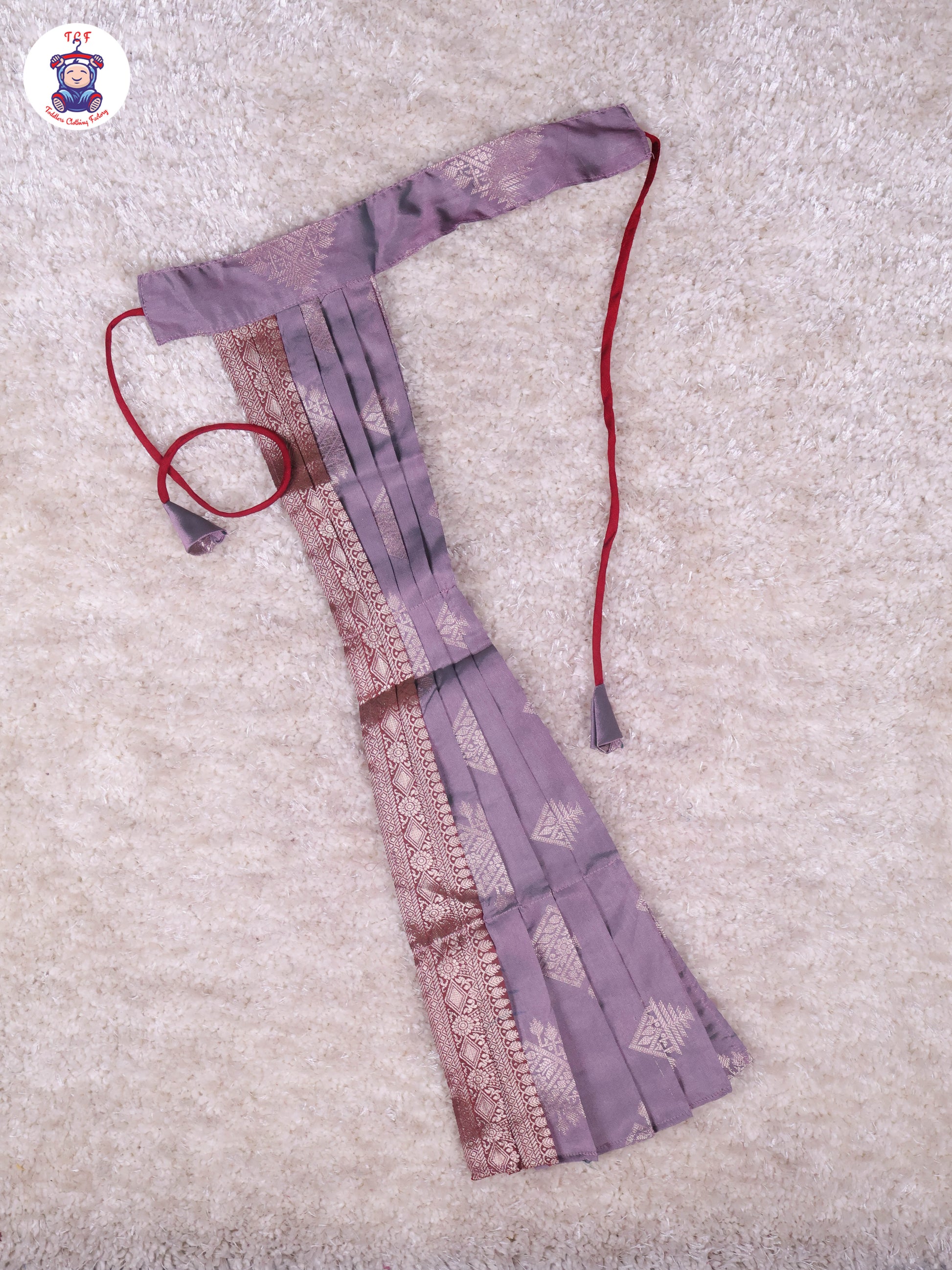Maroon & Grey - Girls Readymade Pavadai Sattai With Half Saree
