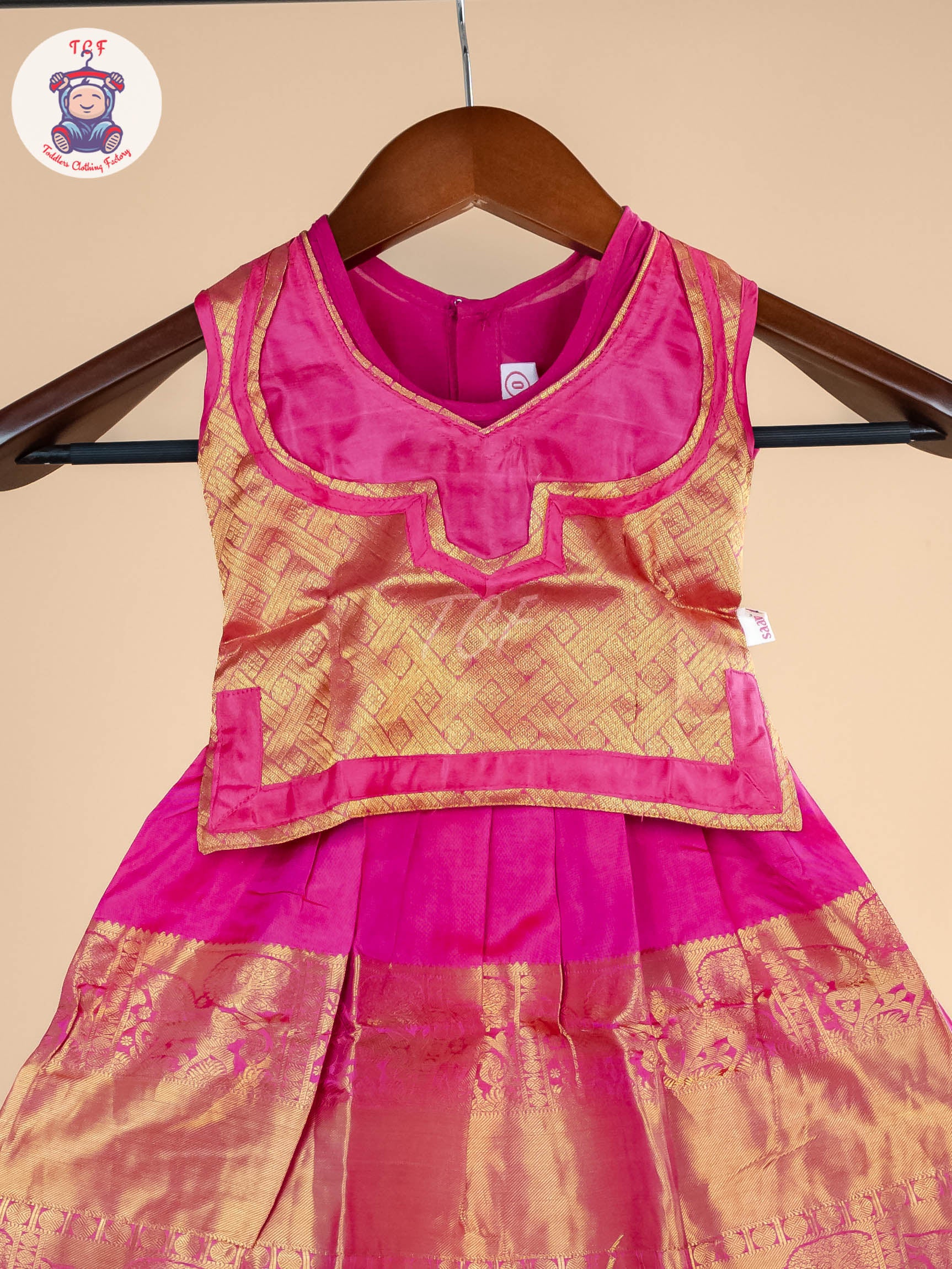 Pure silk pavadai sattai - Dress your little one in timeless tradition with this exquisite pure silk pavadai sattai. Crafted from the finest quality silk, this elegant ensemble features a richly woven pavadai (skirt) adorned with traditional zari motifs and vibrant color contrasts, perfectly paired with a matching or contrasting sattai (blouse) for a complete ethnic look.