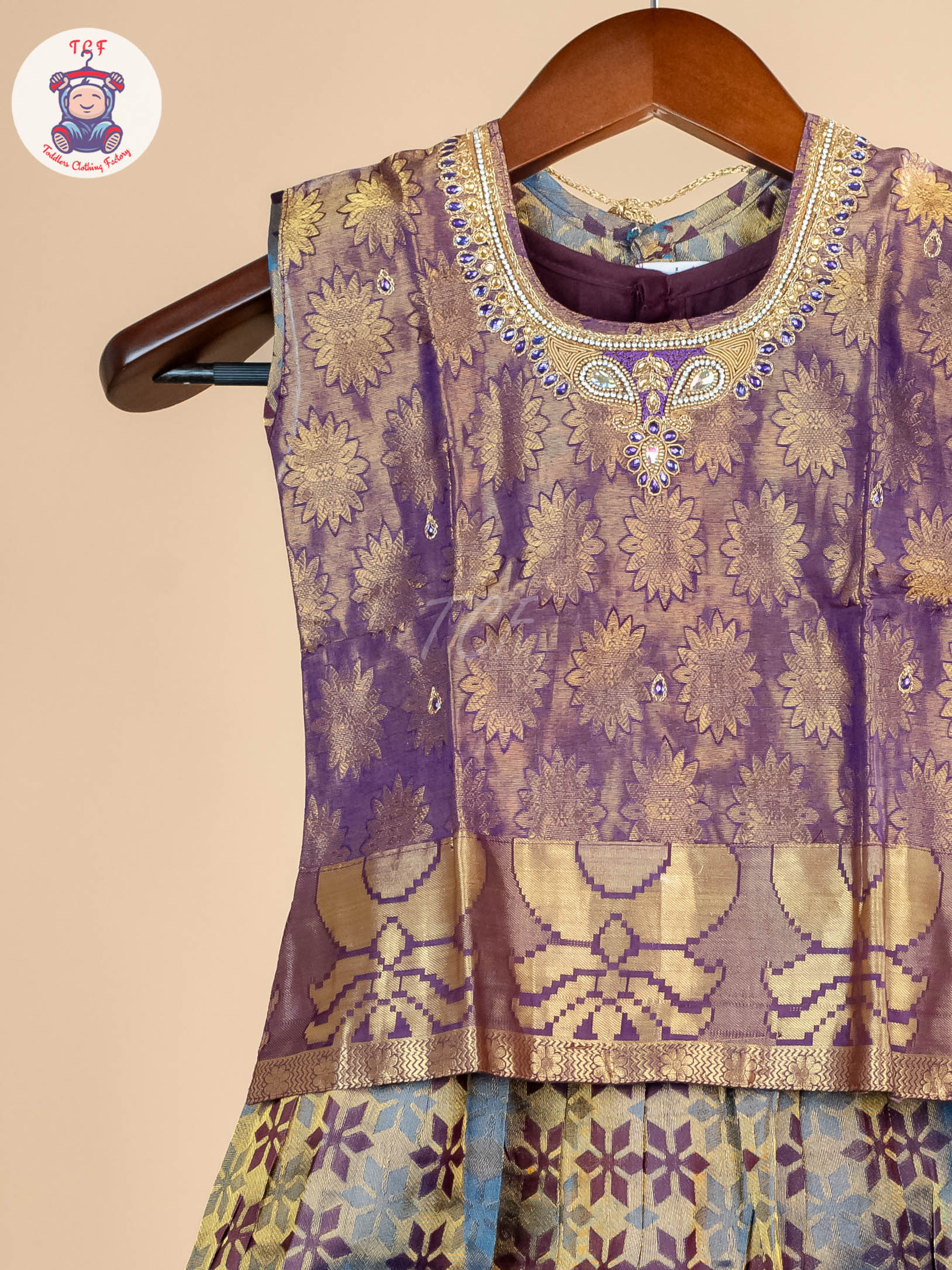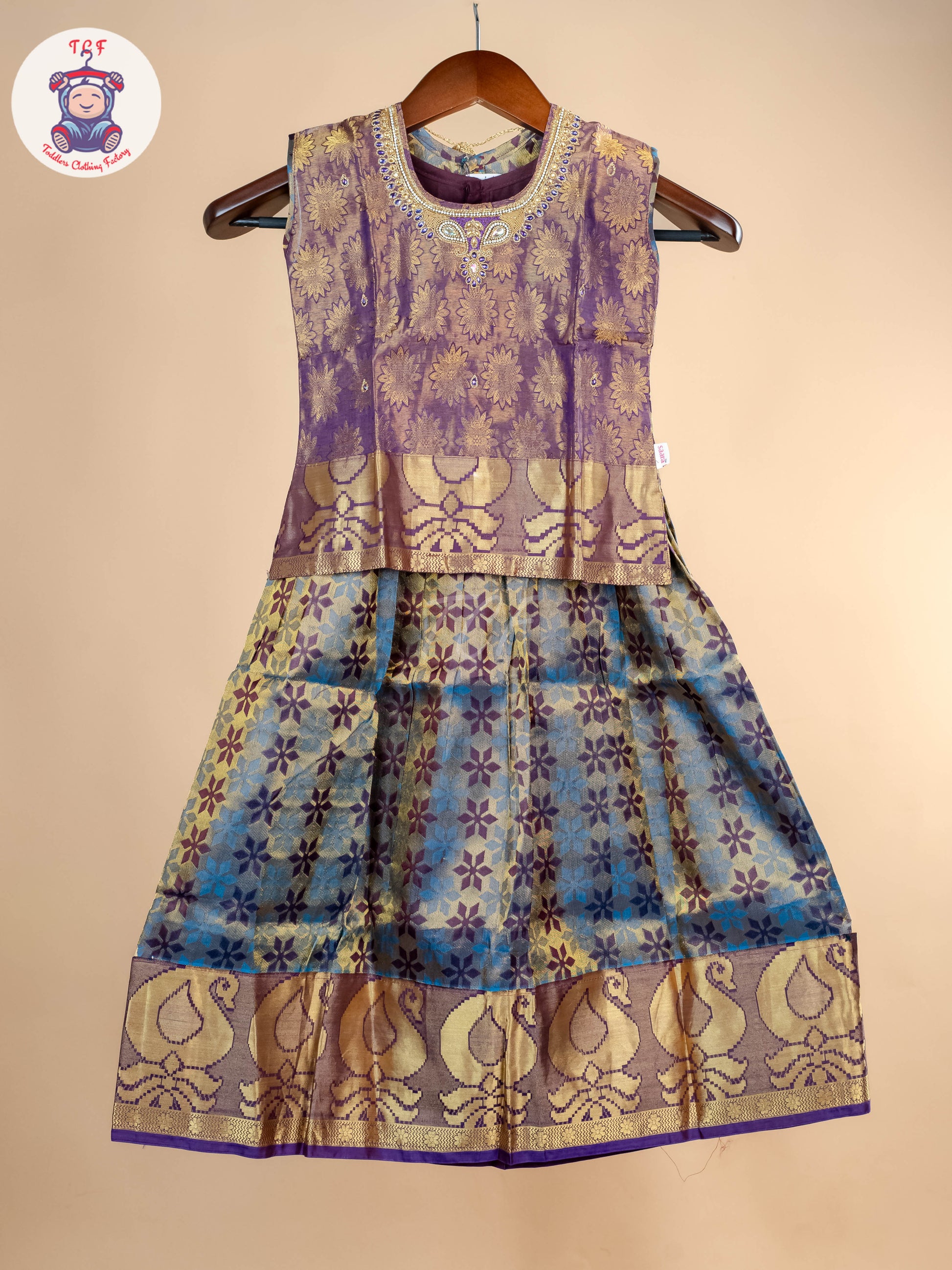 Pure silk pavadai sattai - Dress your little one in timeless tradition with this exquisite pure silk pavadai sattai. Crafted from the finest quality silk, this elegant ensemble features a richly woven pavadai (skirt) adorned with traditional zari motifs and vibrant color contrasts, perfectly paired with a matching or contrasting sattai (blouse) for a complete ethnic look.