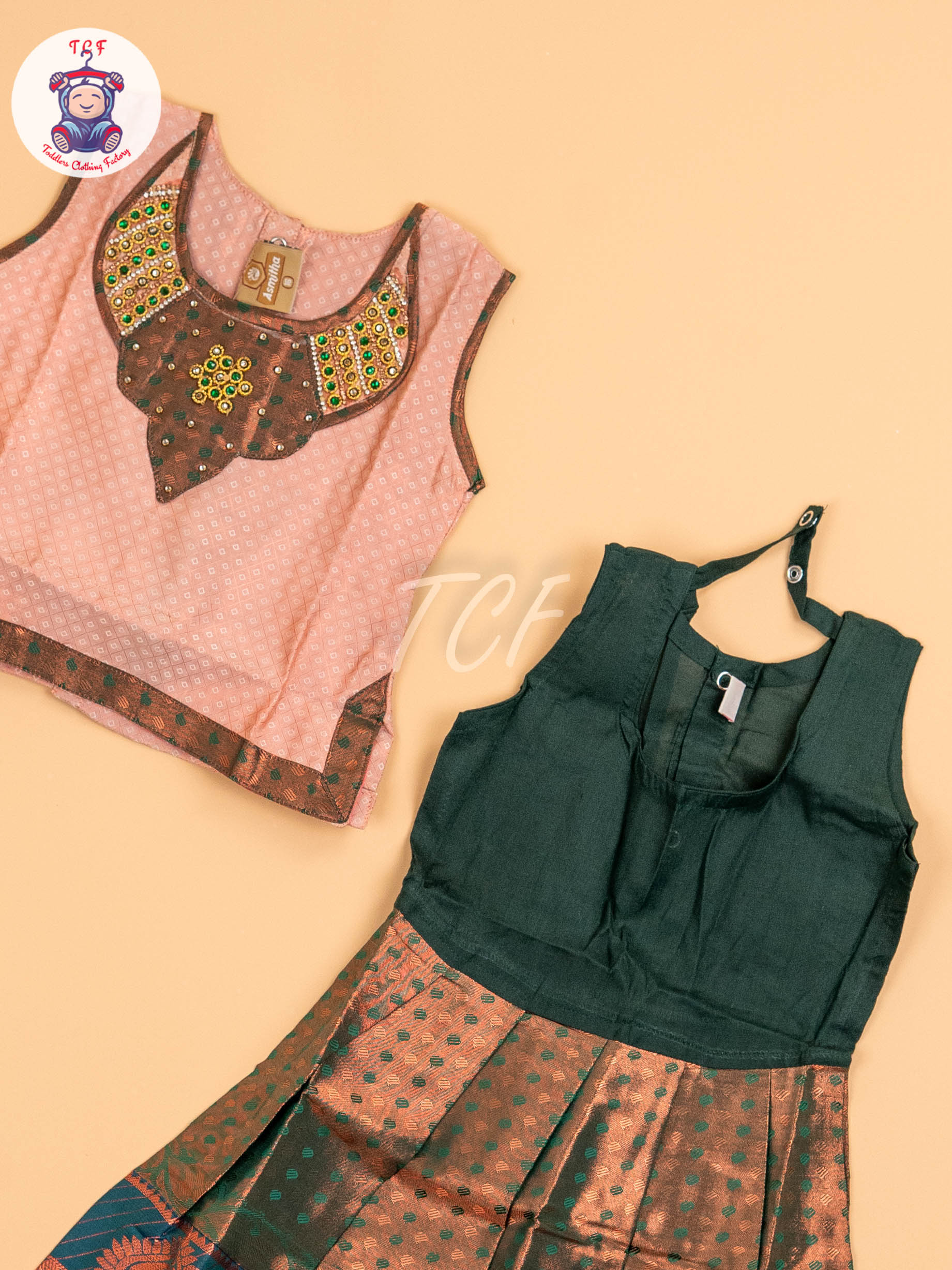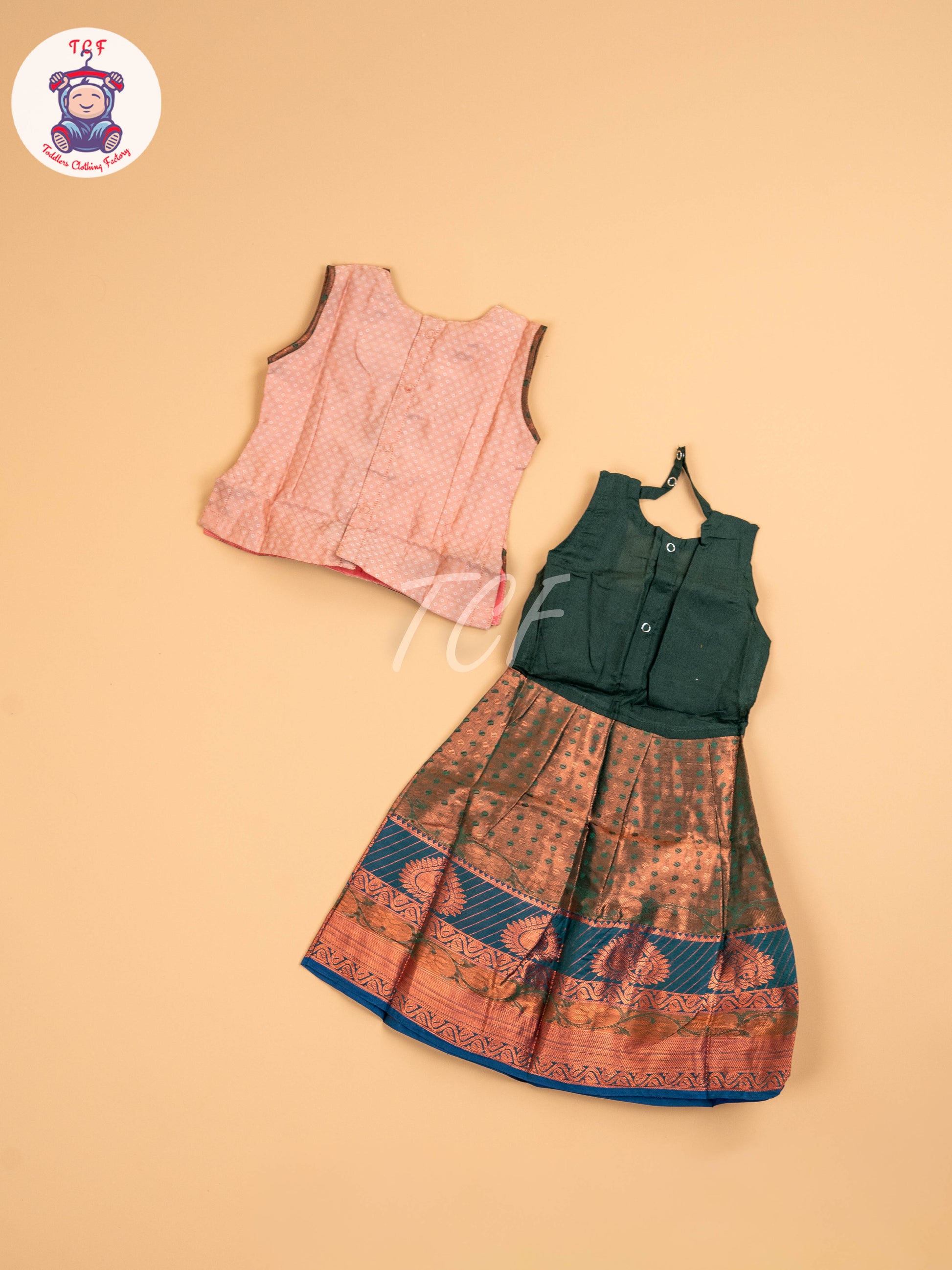 Copper & Dark Green - Girls Readymade Pavadai Sattai